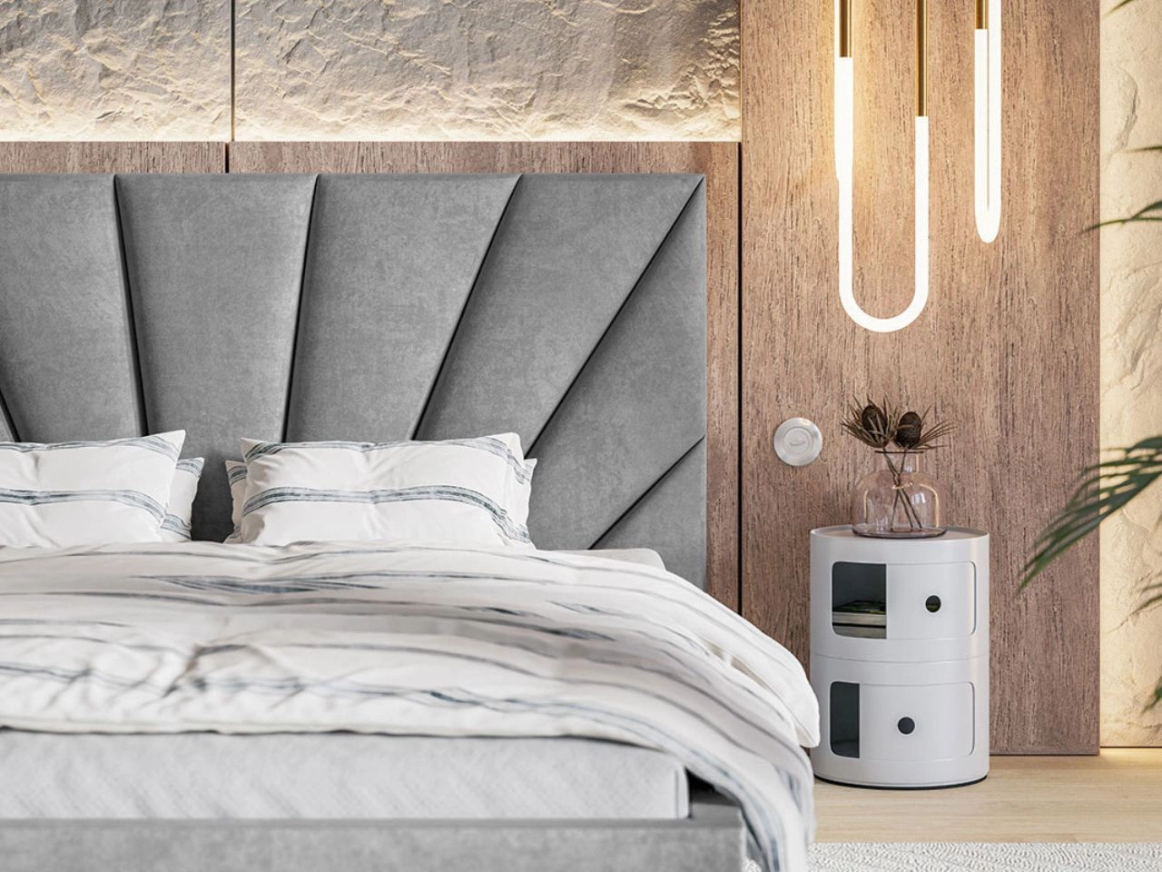Polsterbett ist mit einem geräumigen Bettkasten ausgestattet, so dass es viel Stauraum gibt und wir leicht Ordnung halten können.Es ist in den Größen 120 × 200, 140 × 200, 160 × 200, 180 × 200 erhältlich und eignet sich damit sowohl für kleine als auch für geräumige Schlafzimmer. Das originelle Design und die Funktionalität des Bettes Orlo harmonieren perfekt mit einer luxuriösen und eleganten Einrichtung.