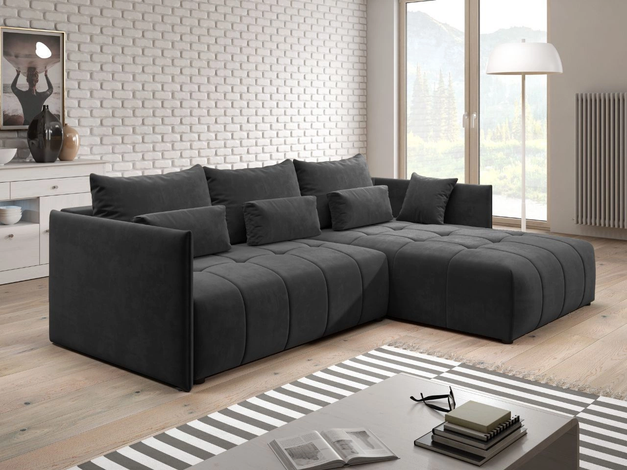Ecksofa L-Form mit Schlaffunktion und Bettkasten Ardi Anthrazit