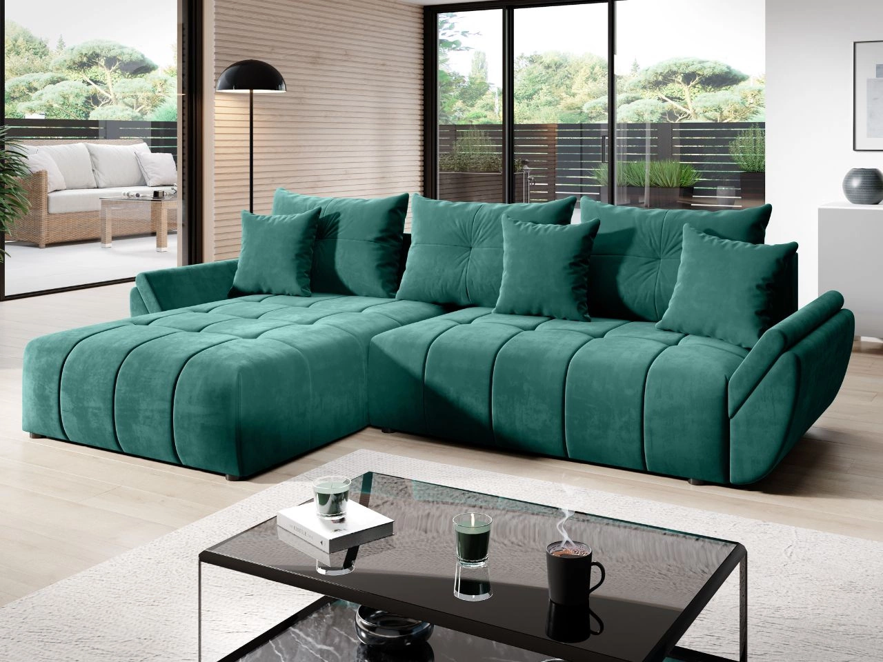 Ecksofa L-Form mit Schlaffunktion und Bettkasten Decor L Grün