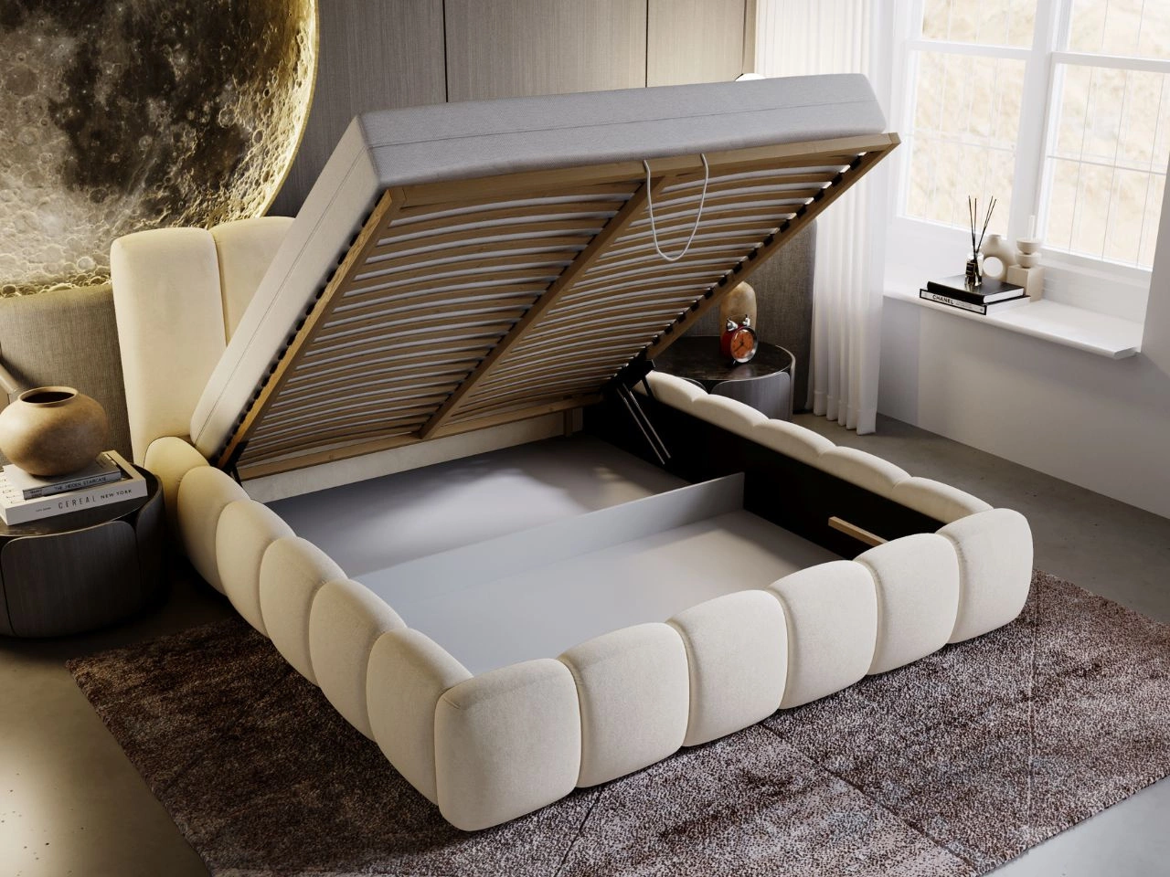 Gepolsterte Bett 160x200 Cloud ist nicht nur optisch ansprechend, sondern auch äußerst funktional. Der Bettkasten für Bettwäsche bietet zusätzlichen Stauraum, was es zu einer praktischen Lösung für jedes Interieur macht. Dank des verstärkten Rahmens und der Federnautomaten, lässt sich der Zugang zum Stauraum unter dem Bett leicht öffnen.