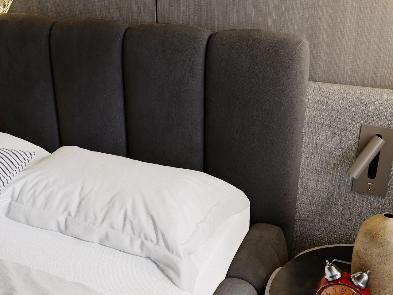 Polsterbett 180x200 Cloud ist mit dem Stoff MONOLITH bezogen, der sich durch samtige Weichheit und Schmutzresistenz auszeichnet. Die hydrophobe Beschichtung schützt den Stoff vor dem Eindringen von Flüssigkeiten, indem sie kleine Tropfen auf der Oberfläche bildet, die sich leicht abwischen lassen. Der Stoff besteht zu 100% aus Polyester, was ihn äußerst langlebig und angenehm im Griff macht und somit langanhaltende Qualität und Komfort gewährleistet.