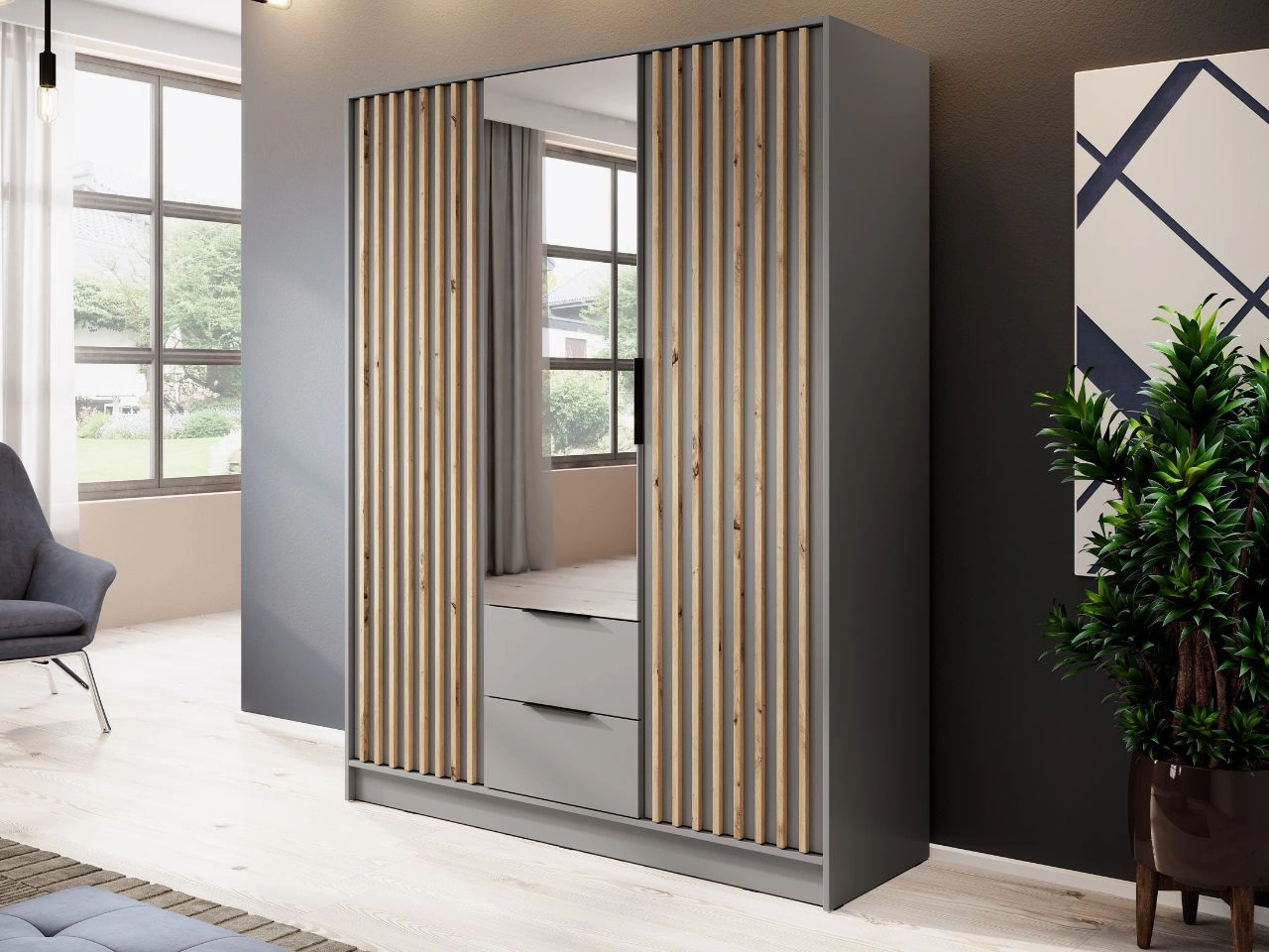 Kleiderschrank mit Spiegel 155 cm Macron Grau, Artisan Eiche