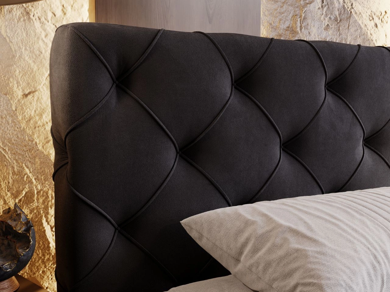 Das Polsterbett Milano ist ein anspruchsvolles Angebot für die anspruchsvollsten Kunden. Das mit Abstand wichtigste Unterscheidungsmerkmal ist das hohe Kopfteil, das dem gesamten Aufbau einen individuellen Charakter verleiht. Seine Oberfläche ist mit weichem Schaumstoff überzogen und mit tiefen, kreuz und quer verlaufenden Kedra-Nähten verziert, die ein Rautenmuster erzeugen.