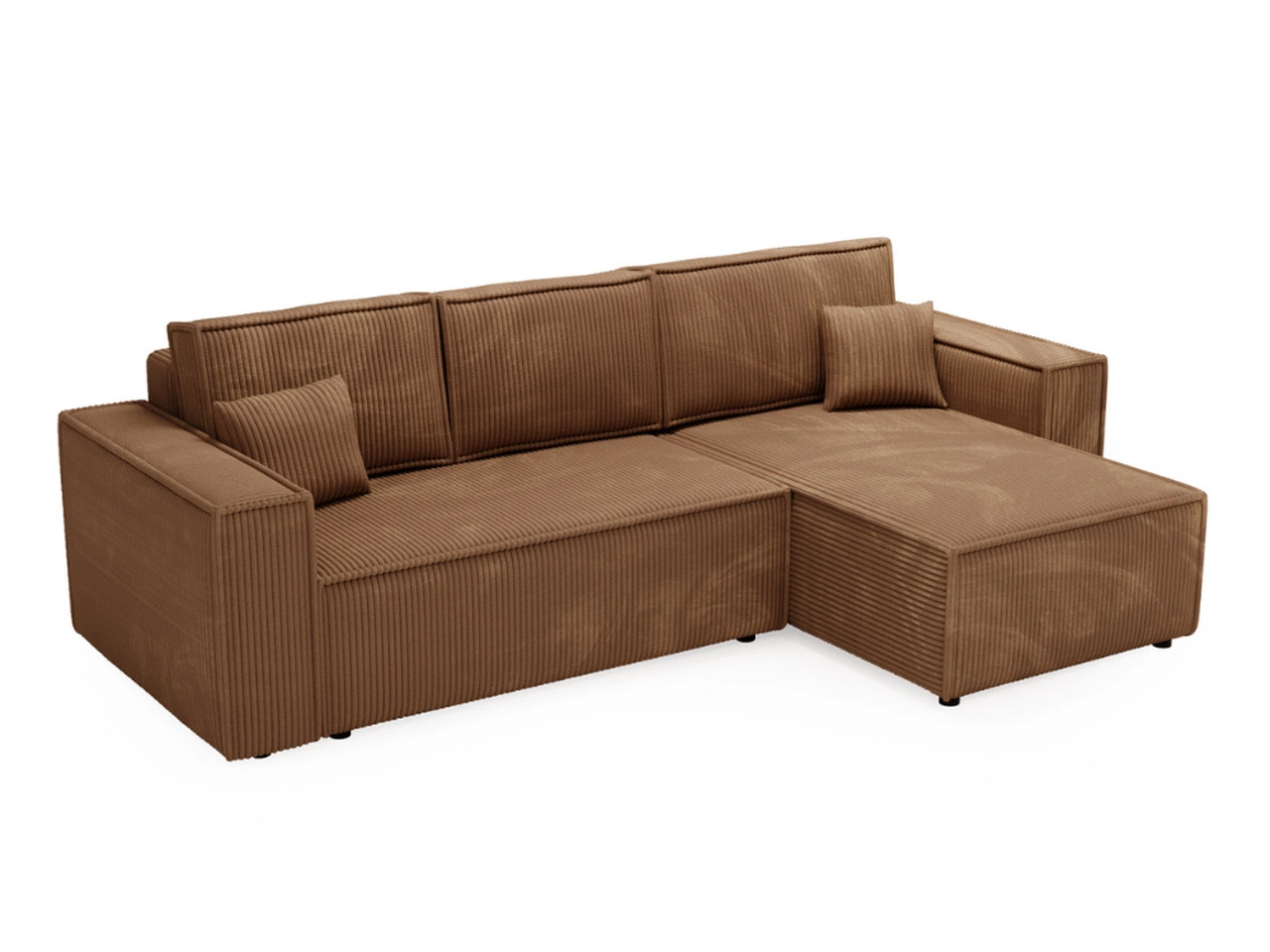 Ecksofa Prato mit Schlaffunktion und Bettkasten ist eine hervorragende Wahl für kleine und mittelgroße Wohnzimmer, in denen jeder Quadratmeter zählt. Das Möbelstück verfügt über breite Armlehnen sowie abnehmbare Rückenpolster – drei große und zwei kleine. Die Kissenbezüge sind abnehmbar, was die Reinigung deutlich erleichtert.