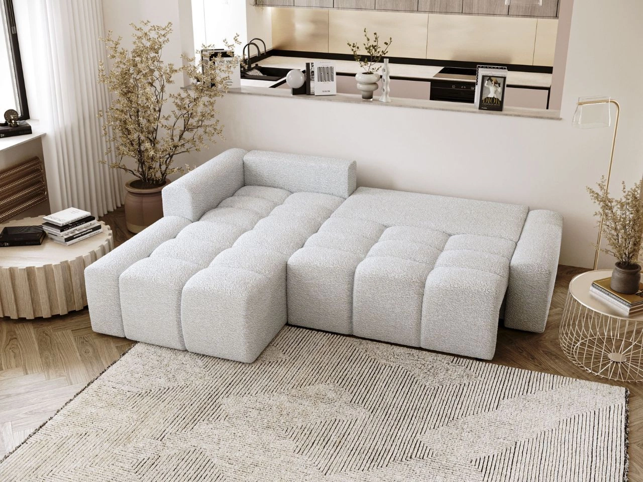 Ecksofa L-Form Links mit Schlaffunktion und Bettkasten Lana Weiß