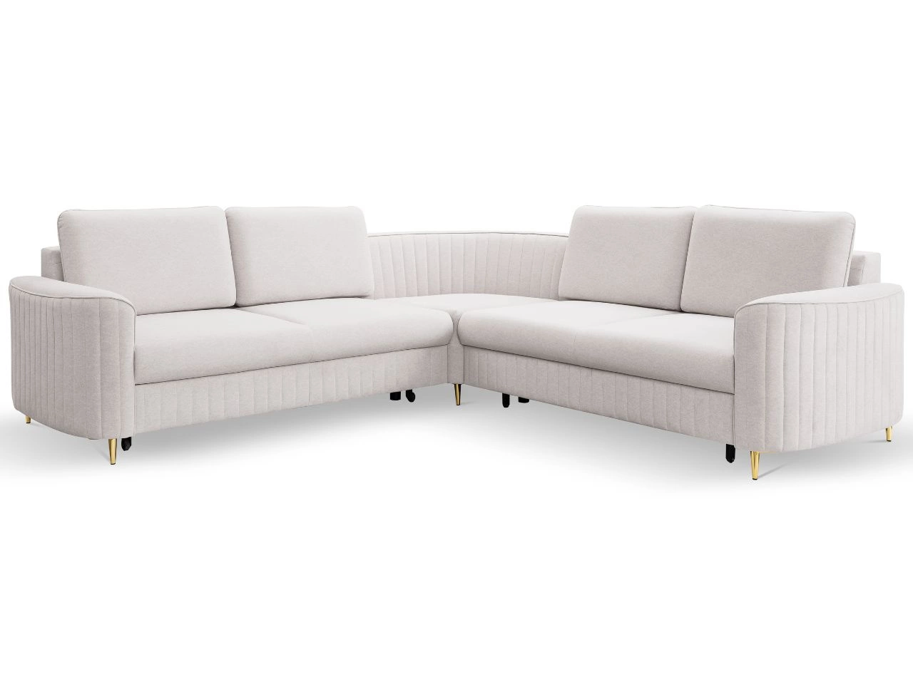 Ecksofa L-Form Links mit Schlaffunktion und Bettkasten Limon Creme