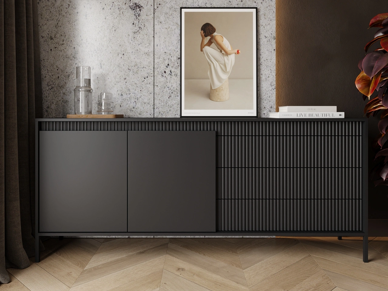 Du ziehst an: Kommode mit Türen und Schubladen 187 cm Sorano Schwarz