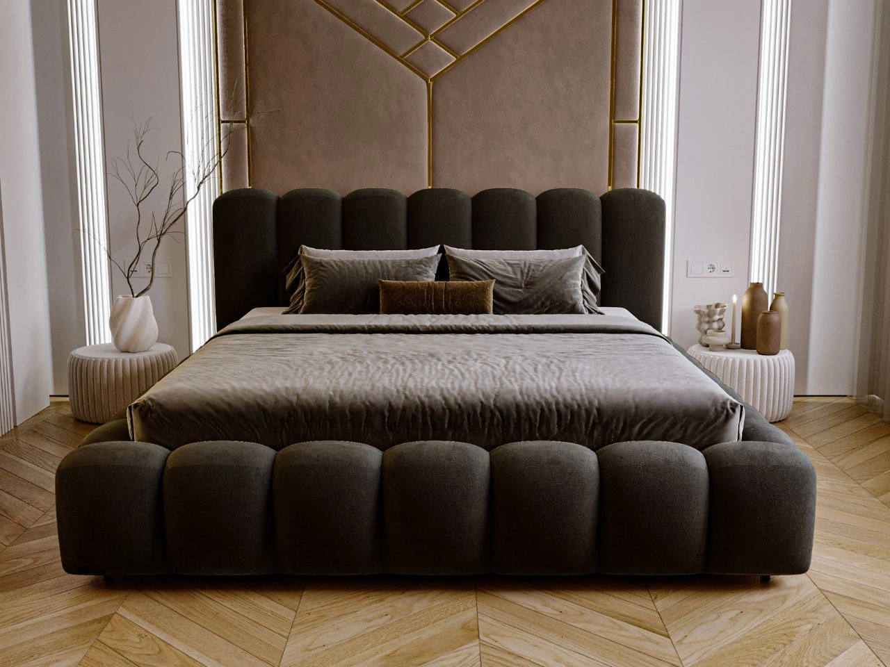 Polsterbett Averia ist eine Kombination aus moderner Eleganz und Funktionalität, die sich perfekt in zeitgenössische Innenräume einfügt. Dank seines außergewöhnlichen Designs und seiner präzisen Verarbeitung erfüllt dieses Modell die Erwartungen selbst der anspruchsvollsten Nutzer. Schlafzimmer, als einer der wichtigsten Räume im Haus, verdient ein Möbelstück, das Ästhetik und Praktikabilität vereint.