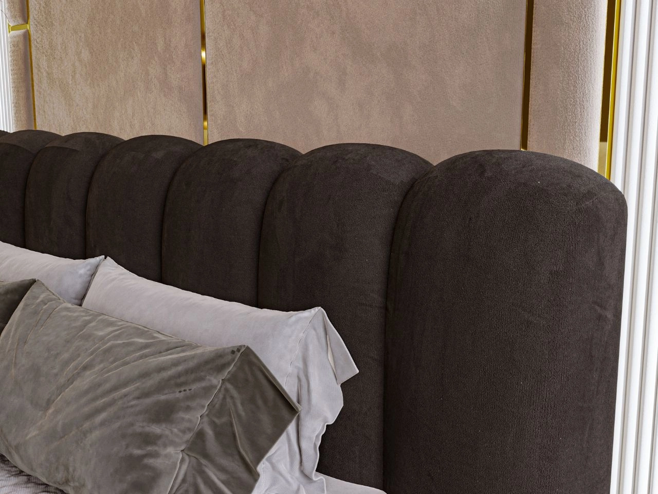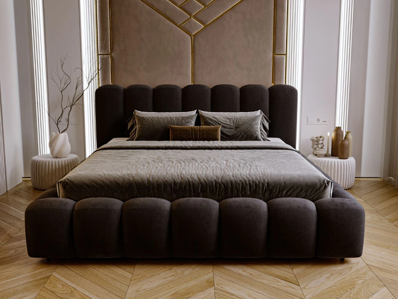 Polsterbett Averia ist eine Kombination aus moderner Eleganz und Funktionalität, die sich perfekt in zeitgenössische Innenräume einfügt. Dank seines außergewöhnlichen Designs und seiner präzisen Verarbeitung erfüllt dieses Modell die Erwartungen selbst der anspruchsvollsten Nutzer. Schlafzimmer, als einer der wichtigsten Räume im Haus, verdient ein Möbelstück, das Ästhetik und Praktikabilität vereint.