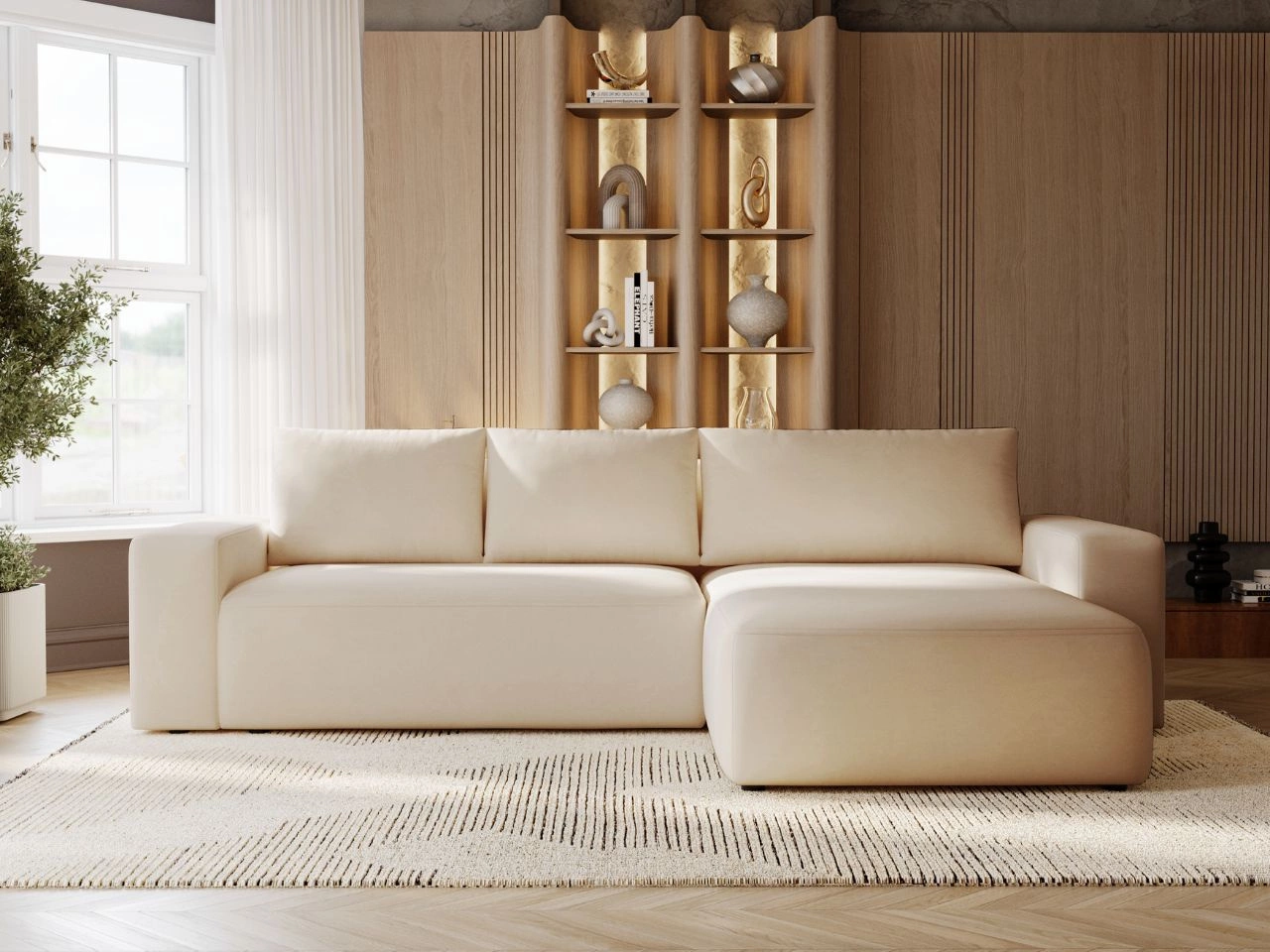 Ecksofa L-Form Rechts mit Schlaffunktion und Bettkasten Tazones Beige