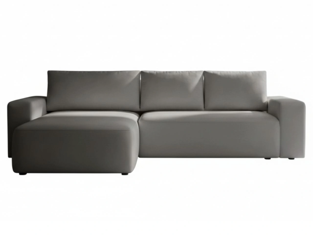 Das Ecksofa verfügt über eine Schlaffunktion, mit der es sich mühelos in eine bequeme Ruhefläche verwandeln lässt. Zusätzlich ist es mit einem praktischen Bettkasten ausgestattet, der die Aufbewahrung erleichtert und hilft, Ordnung im Wohnzimmer zu halten.