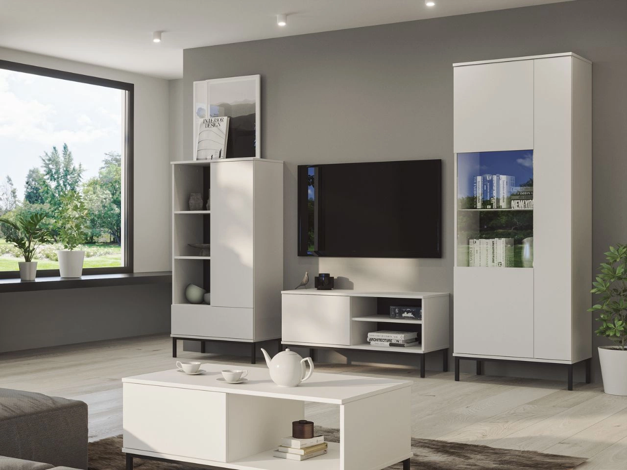 Wohnzimmerset Soroko wird eine wunderschöne und funktionale Wahl sein. Es handelt sich um ein Set, das perfekt in die aktuellen Interior-Trends passt. Konstruktion basiert auf schwarzen, schlanken Metallbeinen, wodurch es ideal zu skandinavischen oder modernen Einrichtungskonzepten passt.