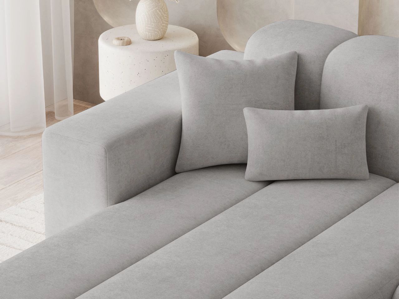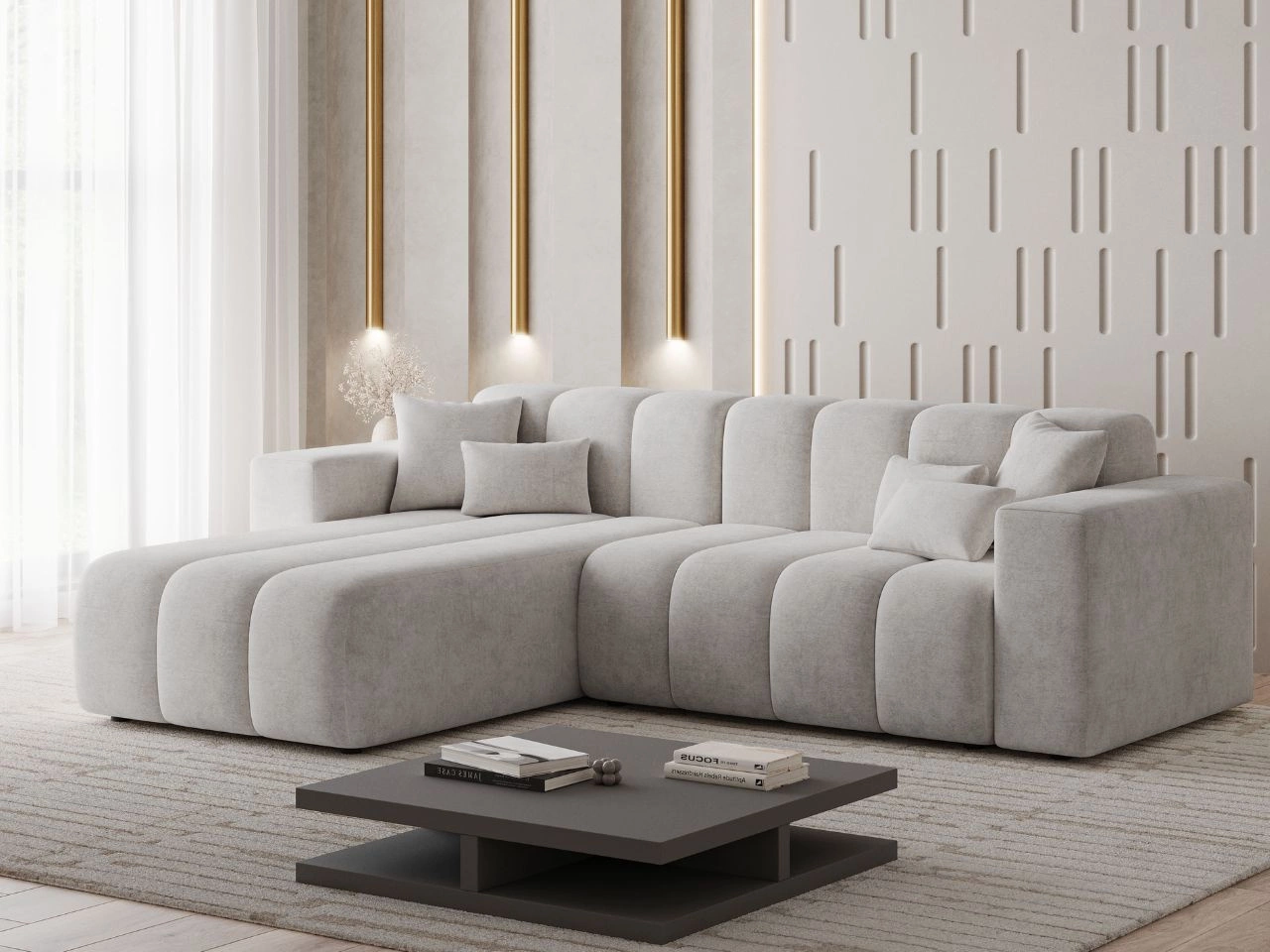 Ecksofa Nork ist eine ausgezeichnete Wahl für alle, die Wert auf modernen Stil, Funktionalität und Komfort legen. Einfache Form verleiht dem Raum Gemütlichkeit und einen einzigartigen Charakter, wodurch eine harmonische Wohnatmosphäre entsteht. Stilvolle Ziernähte unterstreichen das außergewöhnliche Design des Möbelstücks.