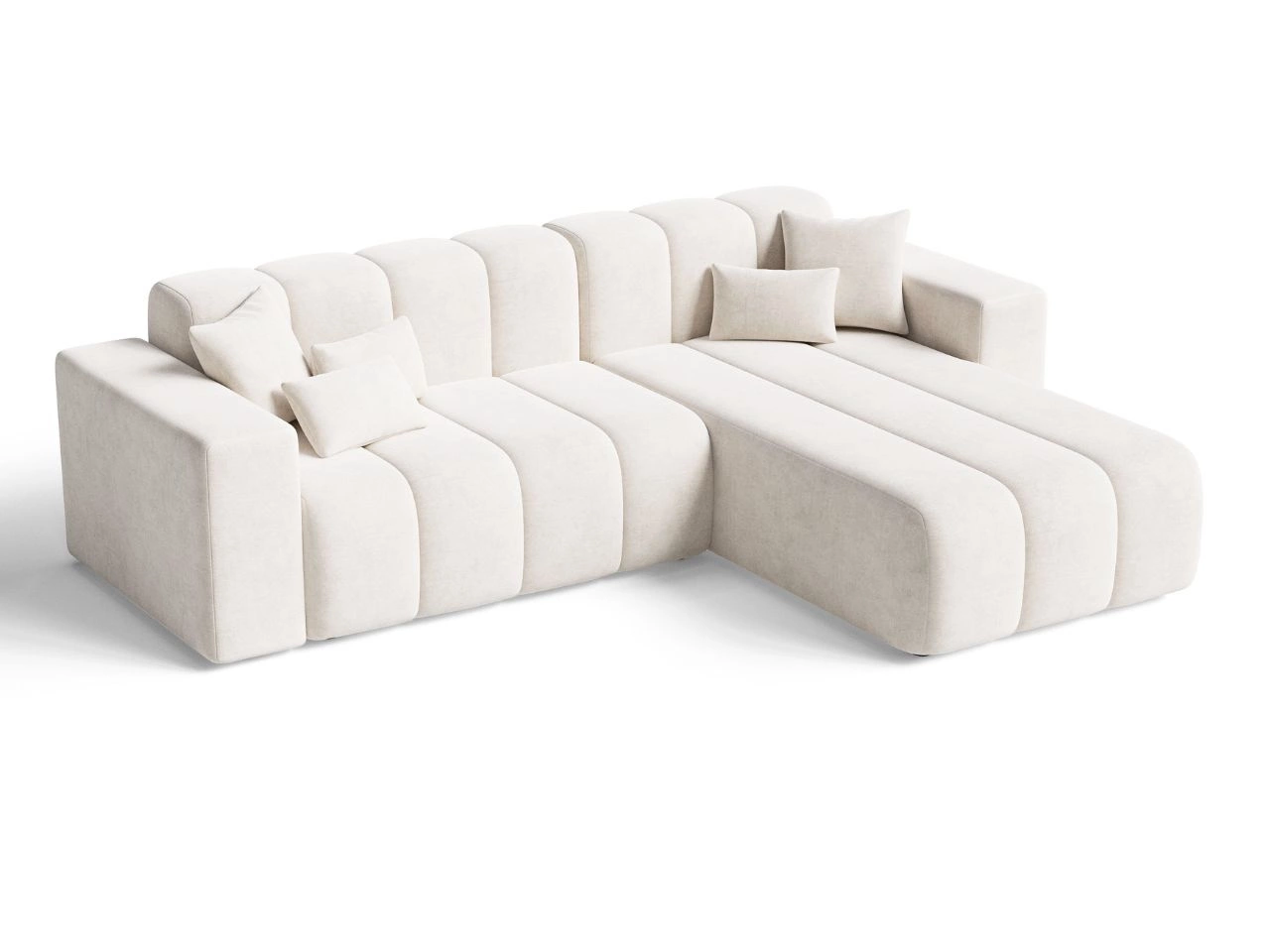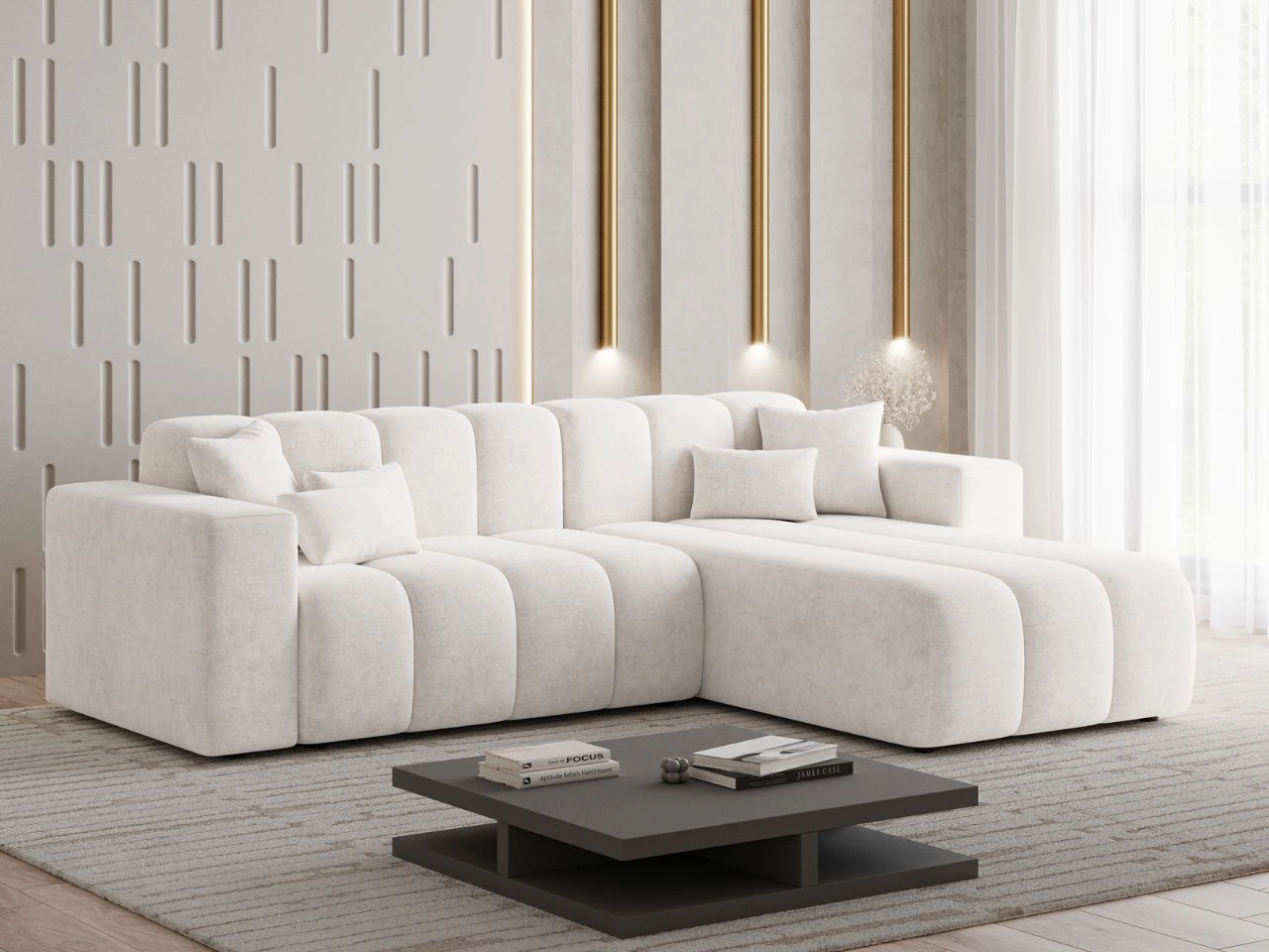 Ecksofa Nork ist eine ausgezeichnete Wahl für alle, die Wert auf modernen Stil, Funktionalität und Komfort legen. Einfache Form verleiht dem Raum Gemütlichkeit und einen einzigartigen Charakter, wodurch eine harmonische Wohnatmosphäre entsteht. Stilvolle Ziernähte unterstreichen das außergewöhnliche Design des Möbelstücks.
