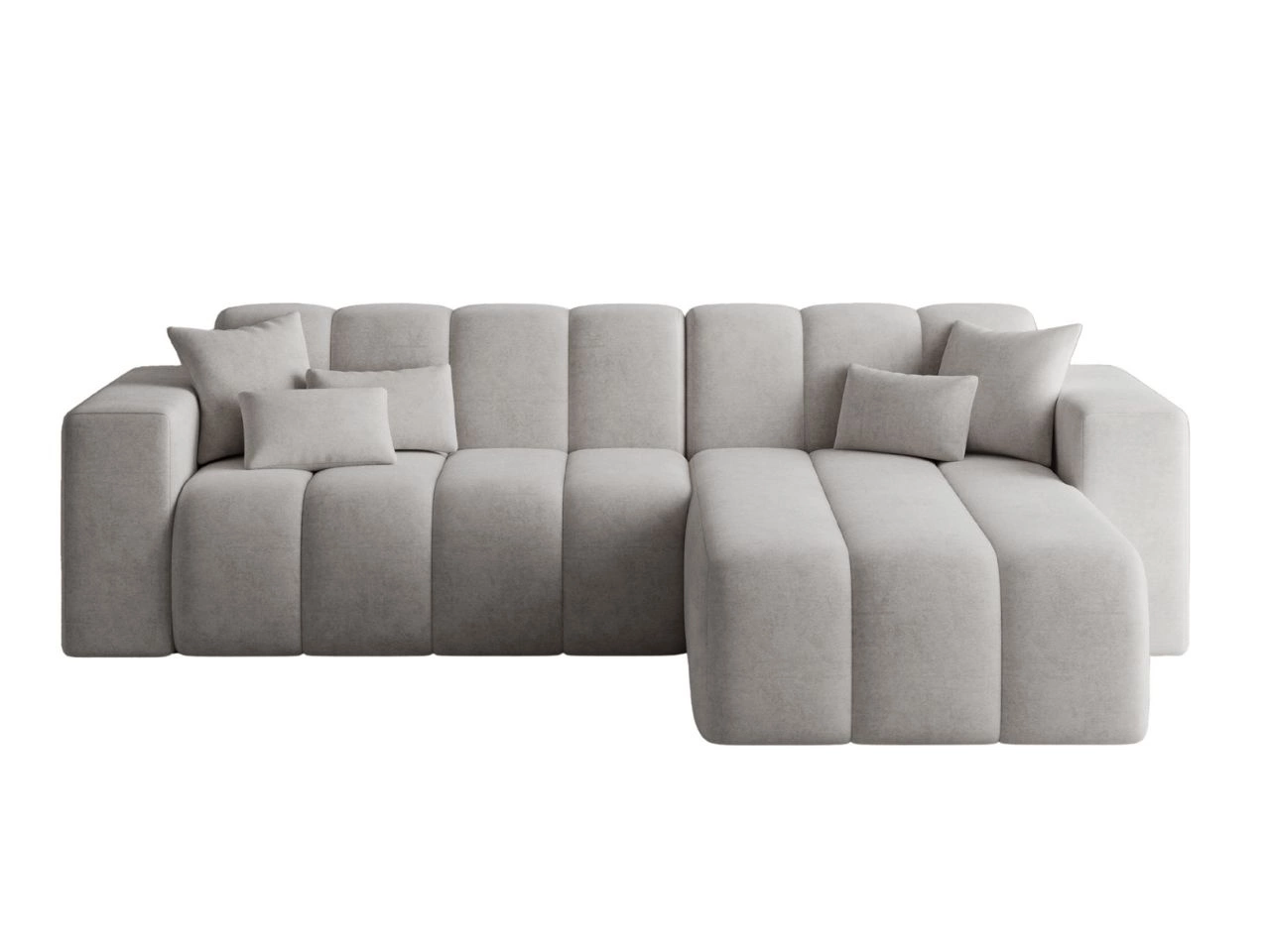 Ecksofa Nork ist eine ausgezeichnete Wahl für alle, die Wert auf modernen Stil, Funktionalität und Komfort legen. Einfache Form verleiht dem Raum Gemütlichkeit und einen einzigartigen Charakter, wodurch eine harmonische Wohnatmosphäre entsteht. Stilvolle Ziernähte unterstreichen das außergewöhnliche Design des Möbelstücks.
