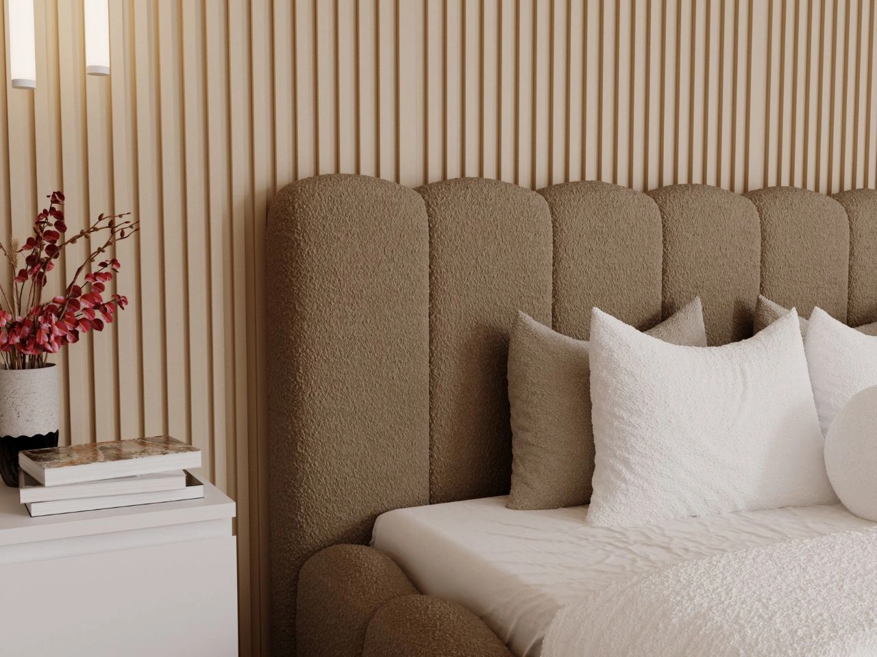 Das gepolsterte Bett Smile besticht durch sein gepolstertes Kopfteil – mit weichem Schaumstoff versehen, besteht es aus mehreren markanten, symmetrischen Segmenten. Das Kopfteil erfüllt nicht nur eine ästhetische, sondern auch eine praktische Funktion. Es dient als bequeme Rückenlehne beim abendlichen Lesen oder Fernsehen.