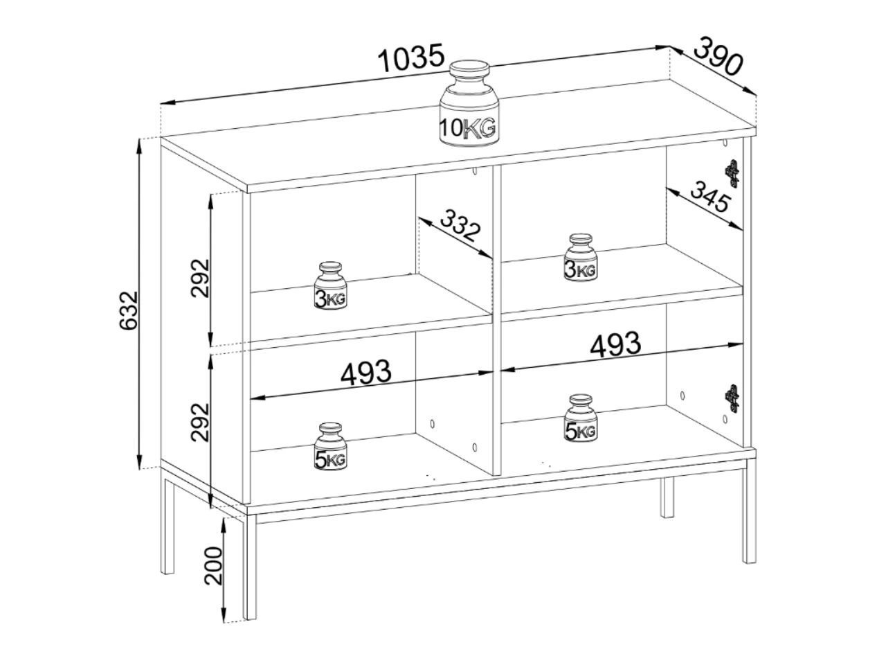 Schlichtes Design und der besondere Charme des Loft-Stils zeichnen diese Kommode aus. Die hohen Beine verleihen dem gesamten Möbelstück Leichtigkeit und machen es einfach, darunter Ordnung zu halten. Auf der geräumigen Tischplatte können verschiedene Dekorationen auffällig präsentiert werden, was das Interieur zusätzlich verschönert.