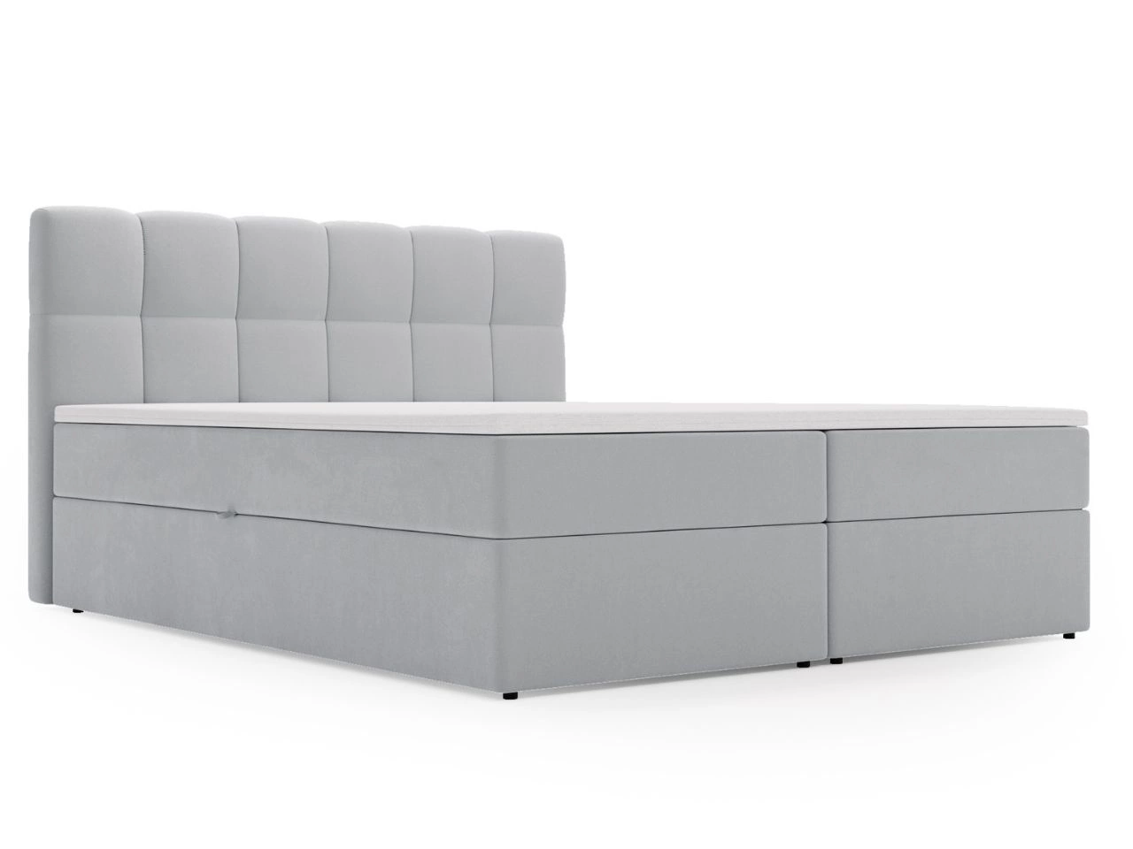 Kontinentale Bett Maison mit Bettkasten zeichnet sich durch eine schlichte und zugleich elegante Form aus. Sorgfältig ausgewählte Details machen dieses Möbelstück passend für sowohl klassische als auch moderne Schlafzimmer. Das auffälligste Merkmal des Bettes ist das hohe Kopfteil mit dekorativen, quadratischen Steppnähten. Es dient nicht nur als stilvolles Designelement, sondern auch als bequeme Rückenlehne beim abendlichen Lesen oder Fernsehen.