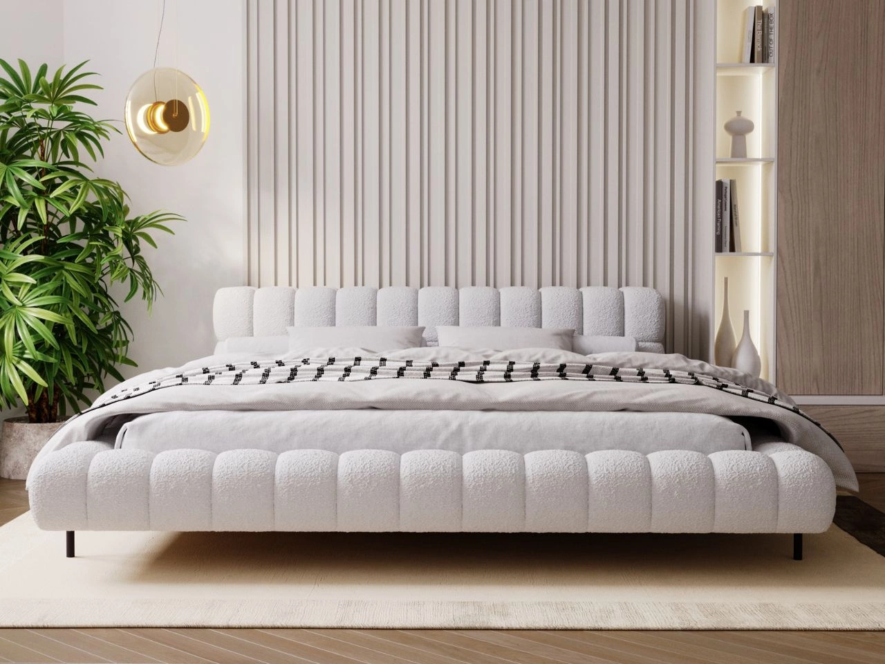 Polsterbett Imagine ist eine äußerst interessante Konstruktion, die sich durch ihr originelles Erscheinungsbild und einen sehr angenehmen Bezugsstoff auszeichnet. Dieses Doppelbett eignet sich hervorragend sowohl für ein klassisches Schlafzimmer als auch für ein modernes Loft. Das dominierende Element ist das breite Kopfteil, das mit sich im rechten Winkel kreuzenden Steppnähten verziert ist. Auffällig sind auch die Dicke des Kopfteils sowie die hohen Metallfüße, die dem Möbelstück Leichtigkeit und Eleganz verleihen.