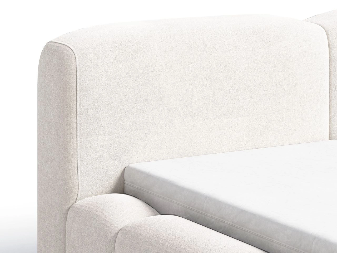 Das markante, gepolsterte Kopfteil des Aubi-Bettes erfüllt sowohl eine dekorative als auch praktische Funktion – es bietet eine bequeme Rückenlehne für den täglichen Komfort. Es besteht aus zwei großen, weichen Paneelen mit abgerundeten Kanten, deren reduzierte Form den eleganten und ausgewogenen Charakter des Bettes unterstreicht.
