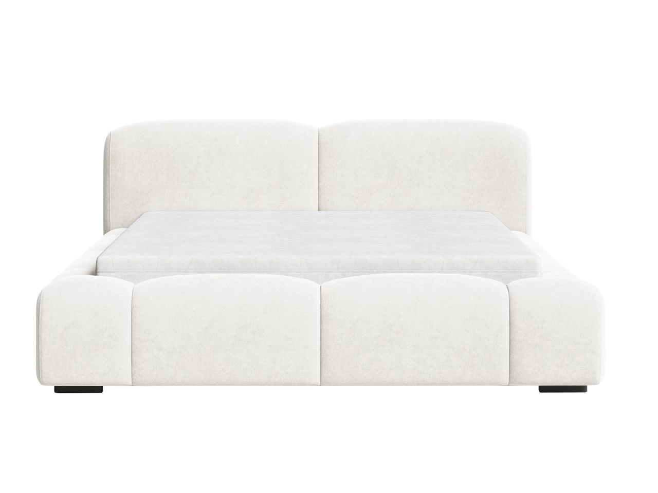 Polsterbett Aubi ist ein modernes Möbelstück mit skulpturaler Form, das sich durch seine leicht abgerundete Silhouette und die massive Basis auszeichnet. Die weichen Seitenelemente sowie das minimalistische, zweiteilige Kopfteil fügen sich harmonisch in elegante, zeitgemäße Innenräume ein.