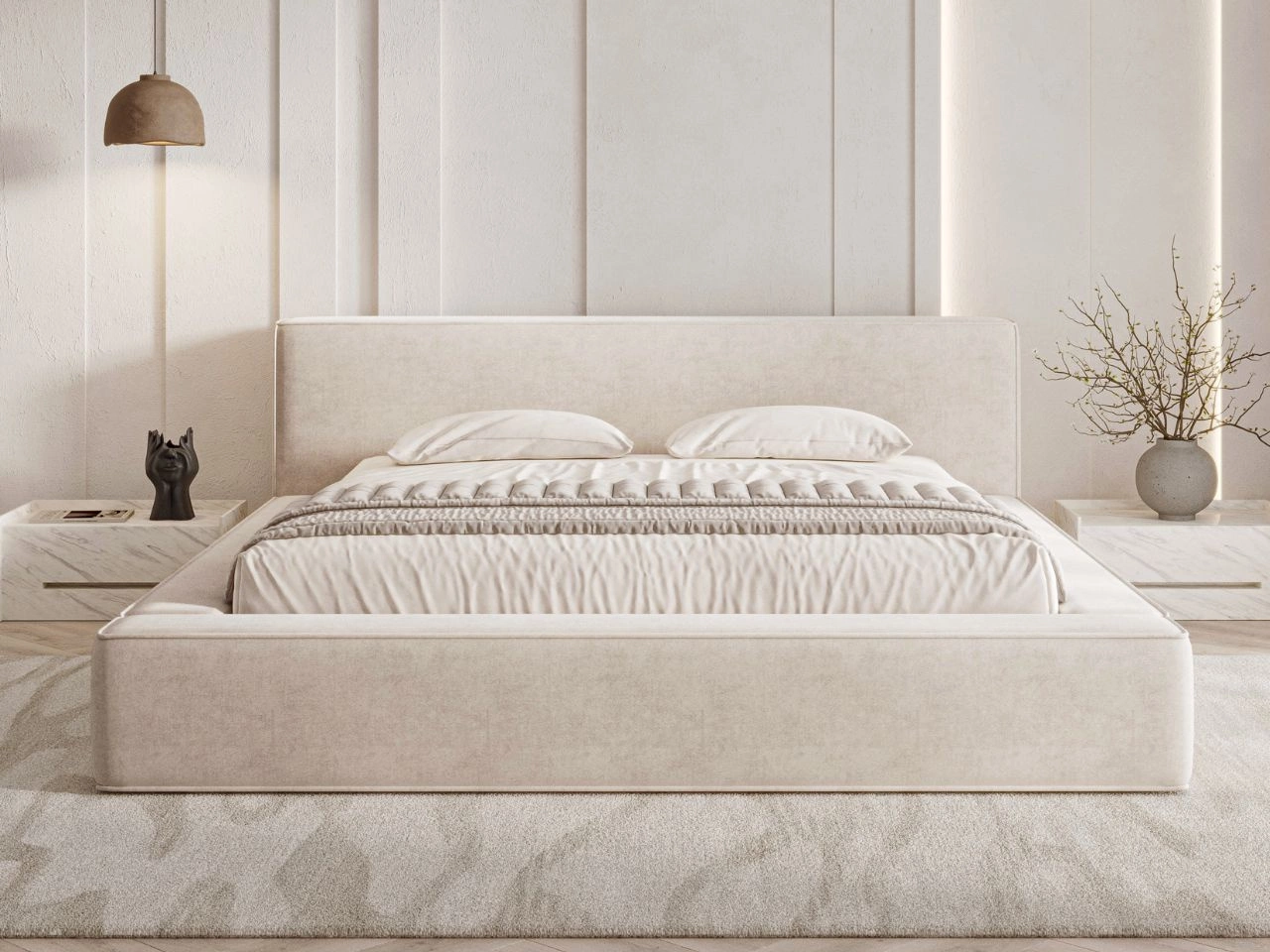 Gepolsterte Bett Mali ist ein elegantes Modell mit einer schlichten, modernen Form, die sich perfekt in minimalistische Einrichtungen einfügt. Sein dezentes Design verleiht dem Raum Leichtigkeit und schafft eine harmonische Atmosphäre.