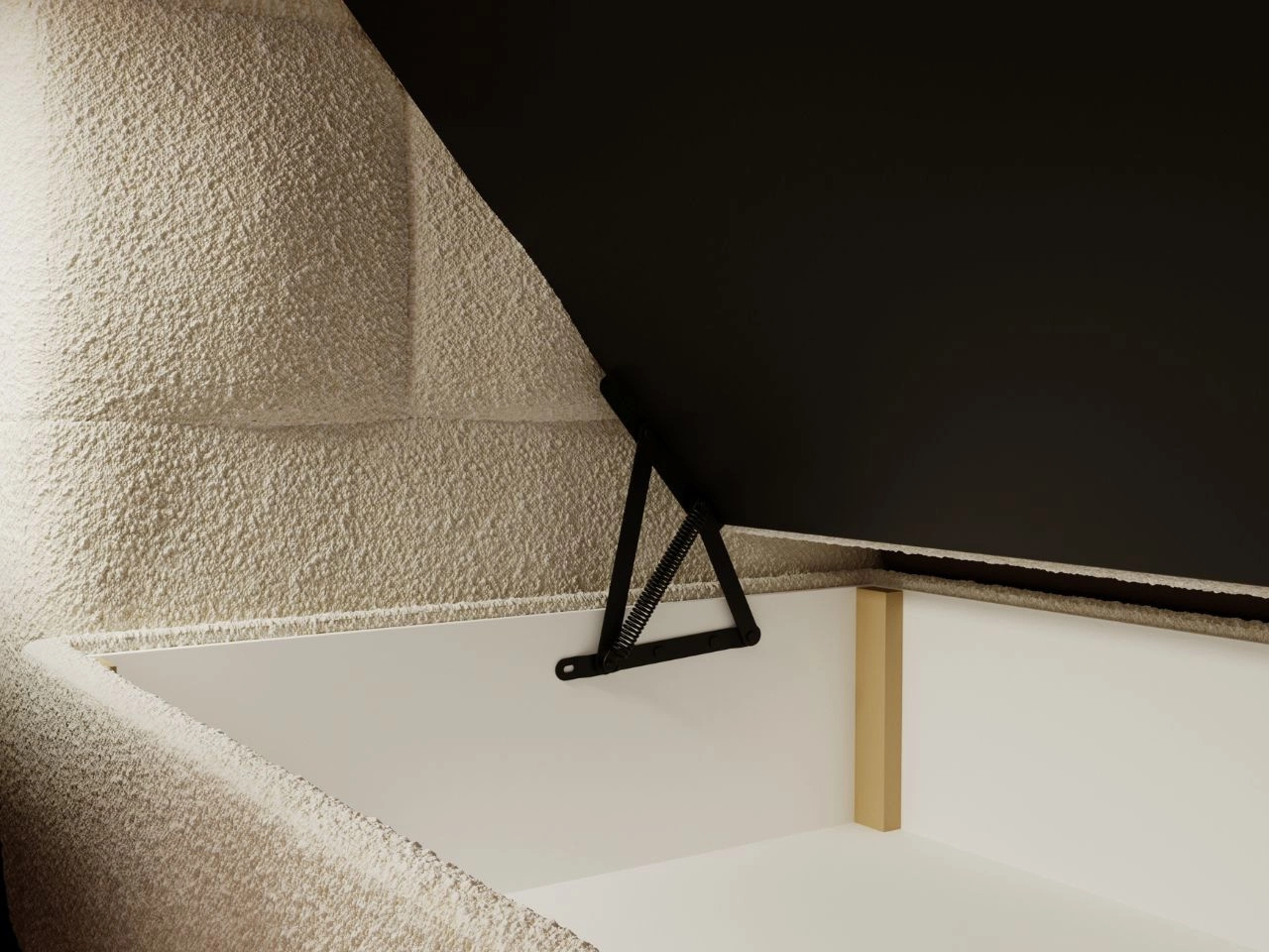 Das Modell Alicante verfügt über einen zweigeteilten Bettkasten mit großzügigem Stauraum – ideal für Decken, Kissen oder saisonale Kleidung. Der integrierte federunterstützte Hebemechanismus sorgt dafür, dass sich das Bett mühelos öffnen lässt, ohne großen Kraftaufwand.