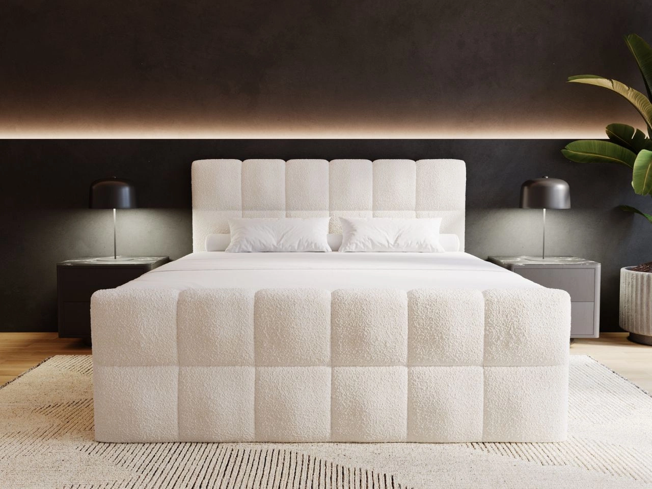 Boxspringbett mit Bettkasten 200x200 Bouclé-Stoff Alicante Beige