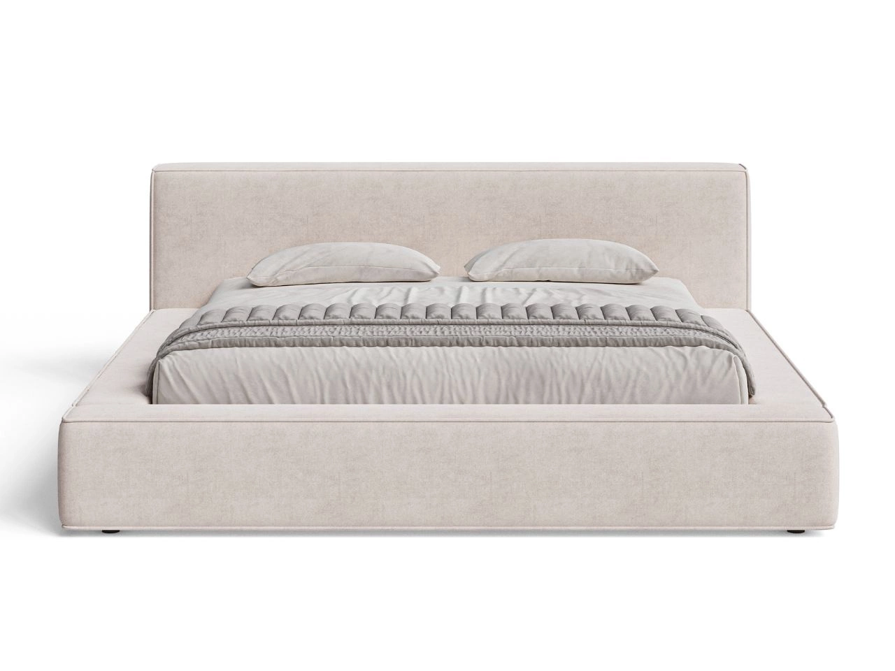 Doppelbett Mali ist mit einem breiten, gepolsterten Kopfteil ausgestattet, das sowohl dekorativ als auch funktional ist. Es bietet eine bequeme Rückenstütze für entspannte Abende und dient dank seiner Breite auch als praktische Ablagefläche für Handy, Buch oder Brille. Dieses durchdachte Detail unterstreicht den modernen Charakter des Möbels.