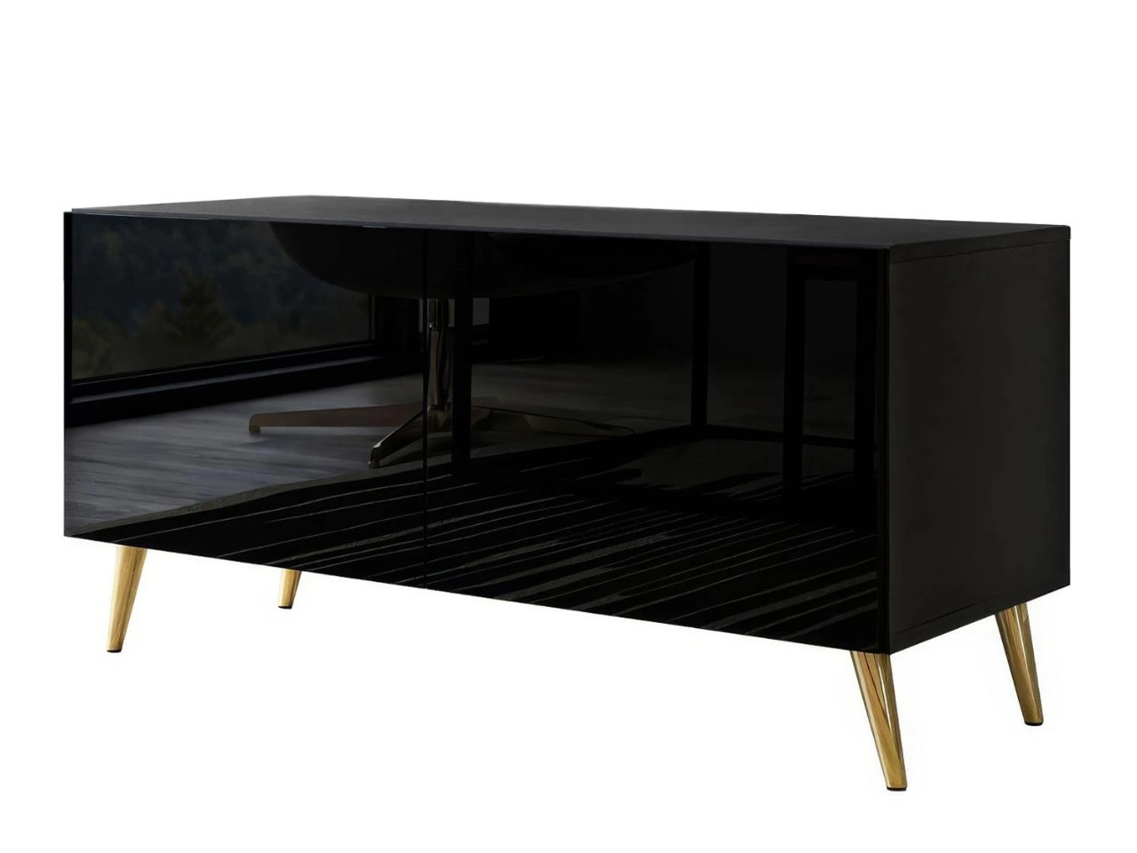 TV-Lowboard mit Türen auf Goldenen Metallbeinen 100 cm Noaé Schwarz Hochglanz