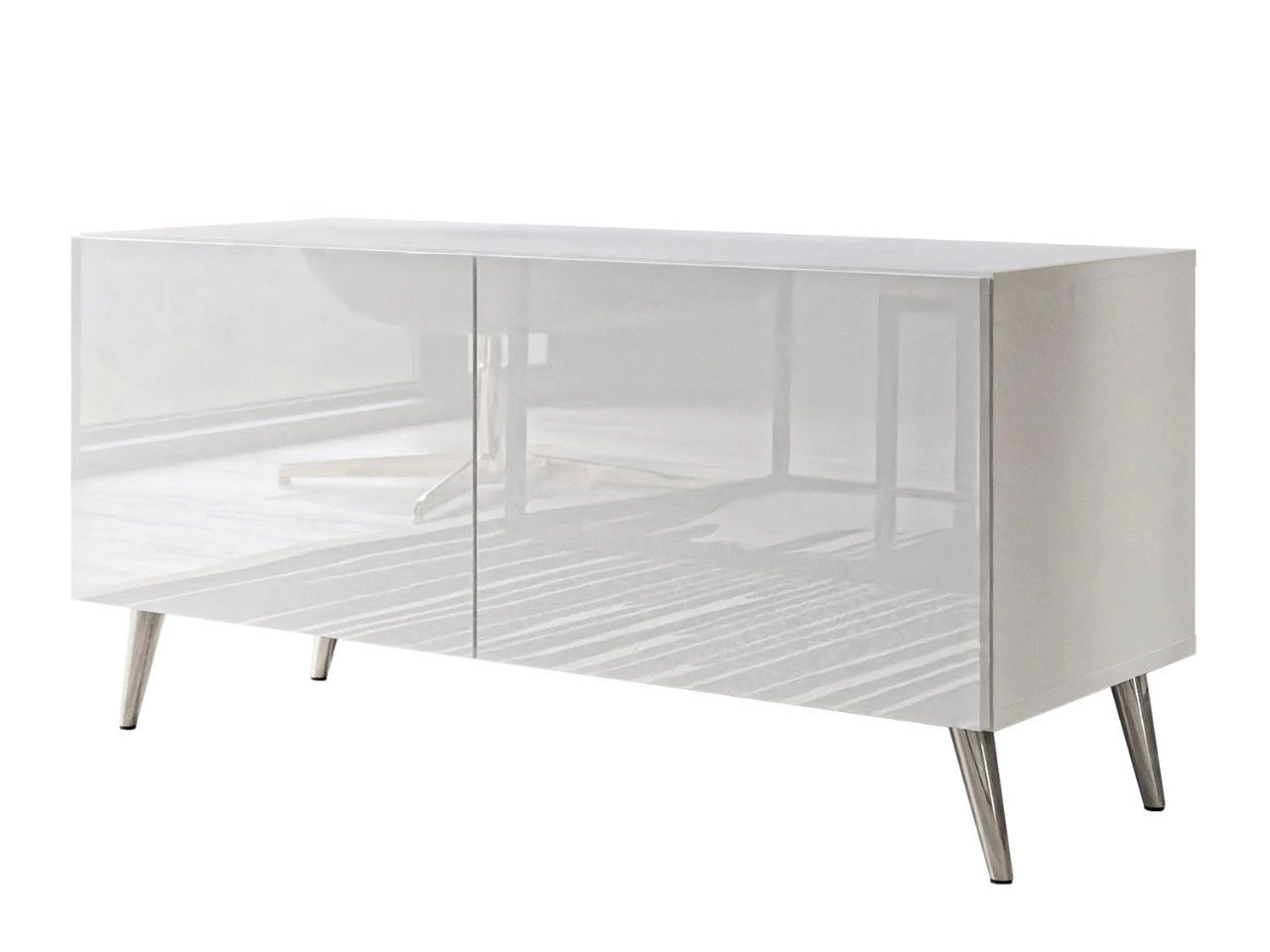 TV-Lowboard mit Türen auf Silbernen Metallbeinen 100 cm Noaé Weiß Hochglanz