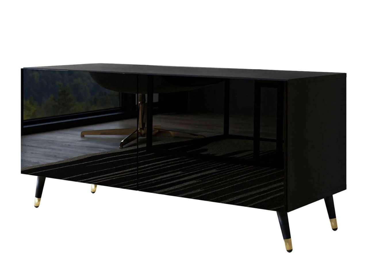TV-Lowboard mit Türen auf Schwarz-Goldenen Metallbeinen 100 cm Noaé Schwarz Hochglanz