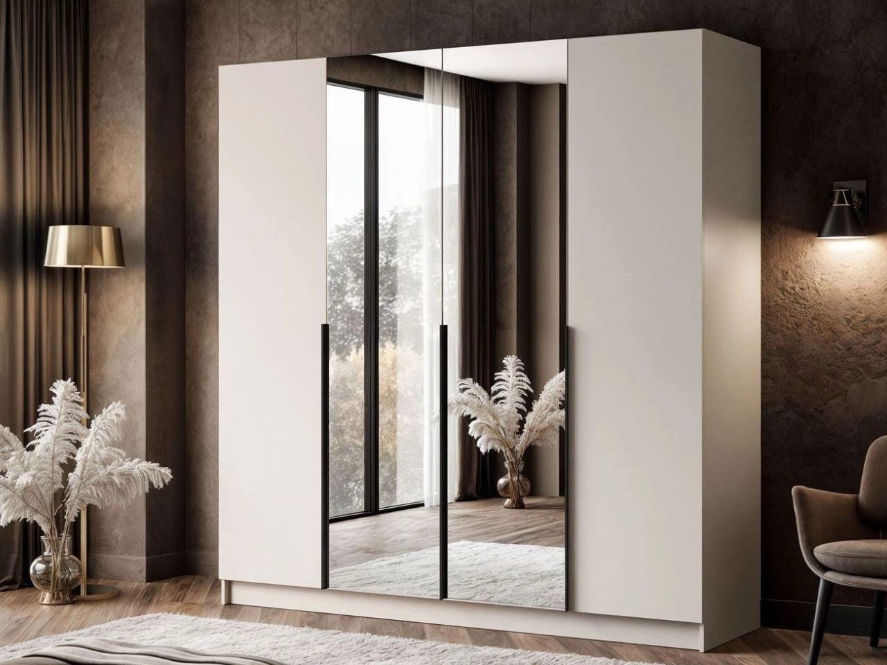 Viertüriger Kleiderschrank mit Drehtüren, Schubladen und Spiegeln Ameli Kaschmir