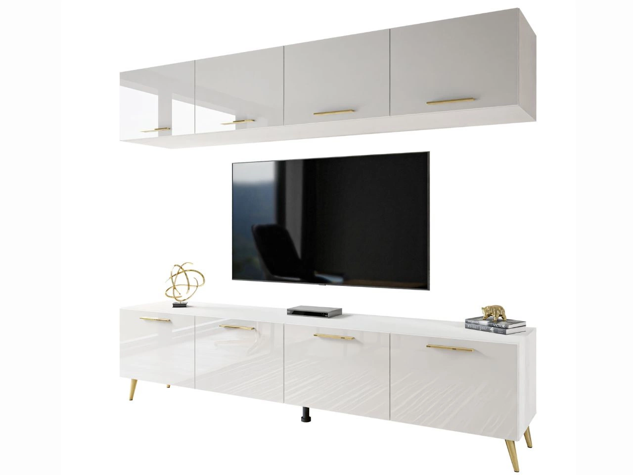 Wohnwand für das Wohnzimmer auf Goldenen Metallbeinen Noaé Weiß Hochglanz
