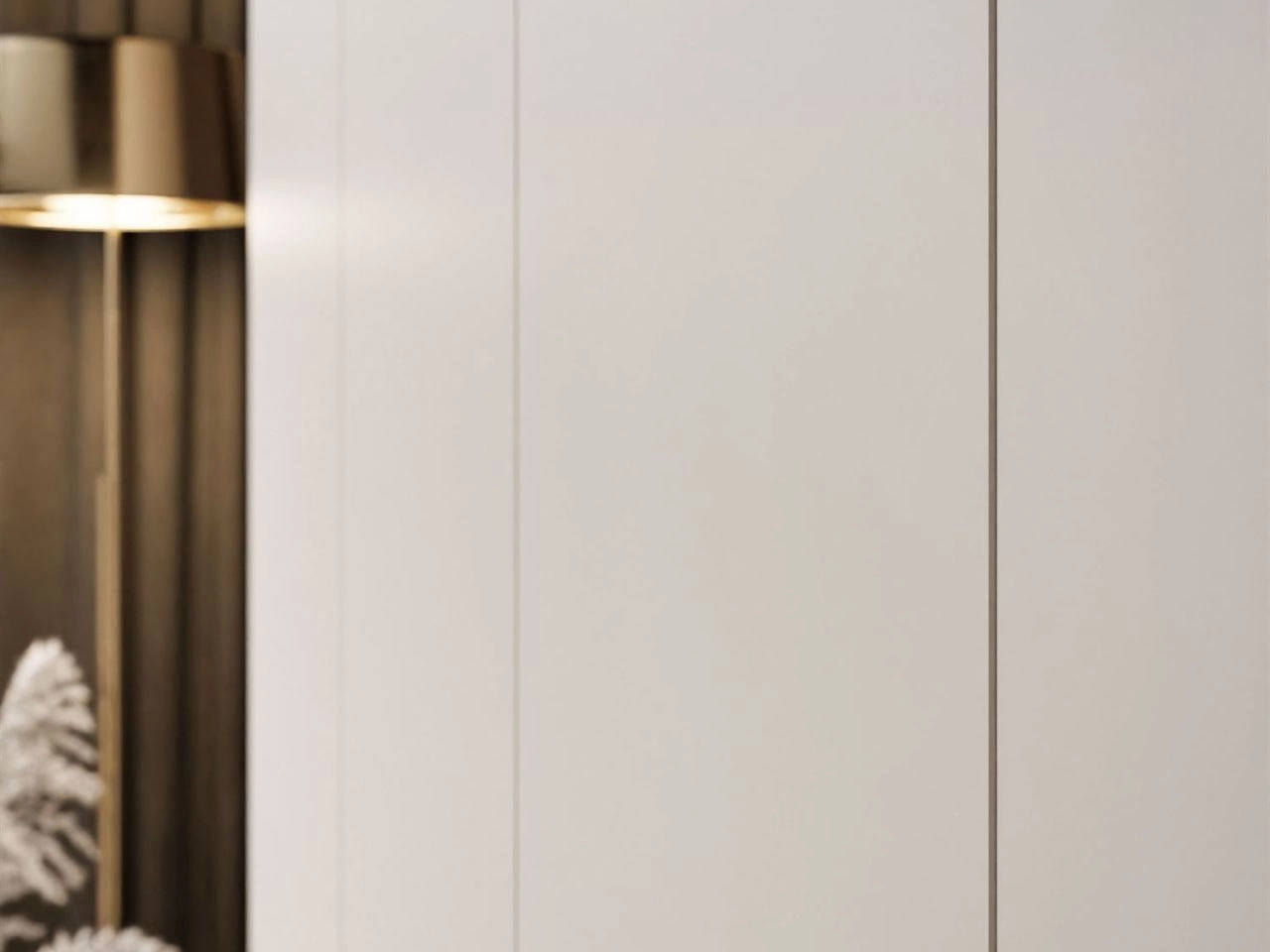 Kollektion Ameli verbindet moderne Eleganz mit praktischem Design. Sie umfasst Kleiderschränke in zwei klassischen Farben: Weiß Hochglanz und dezentem Kaschmir, sodass sie sich problemlos in jedes Interieur einfügen lassen.