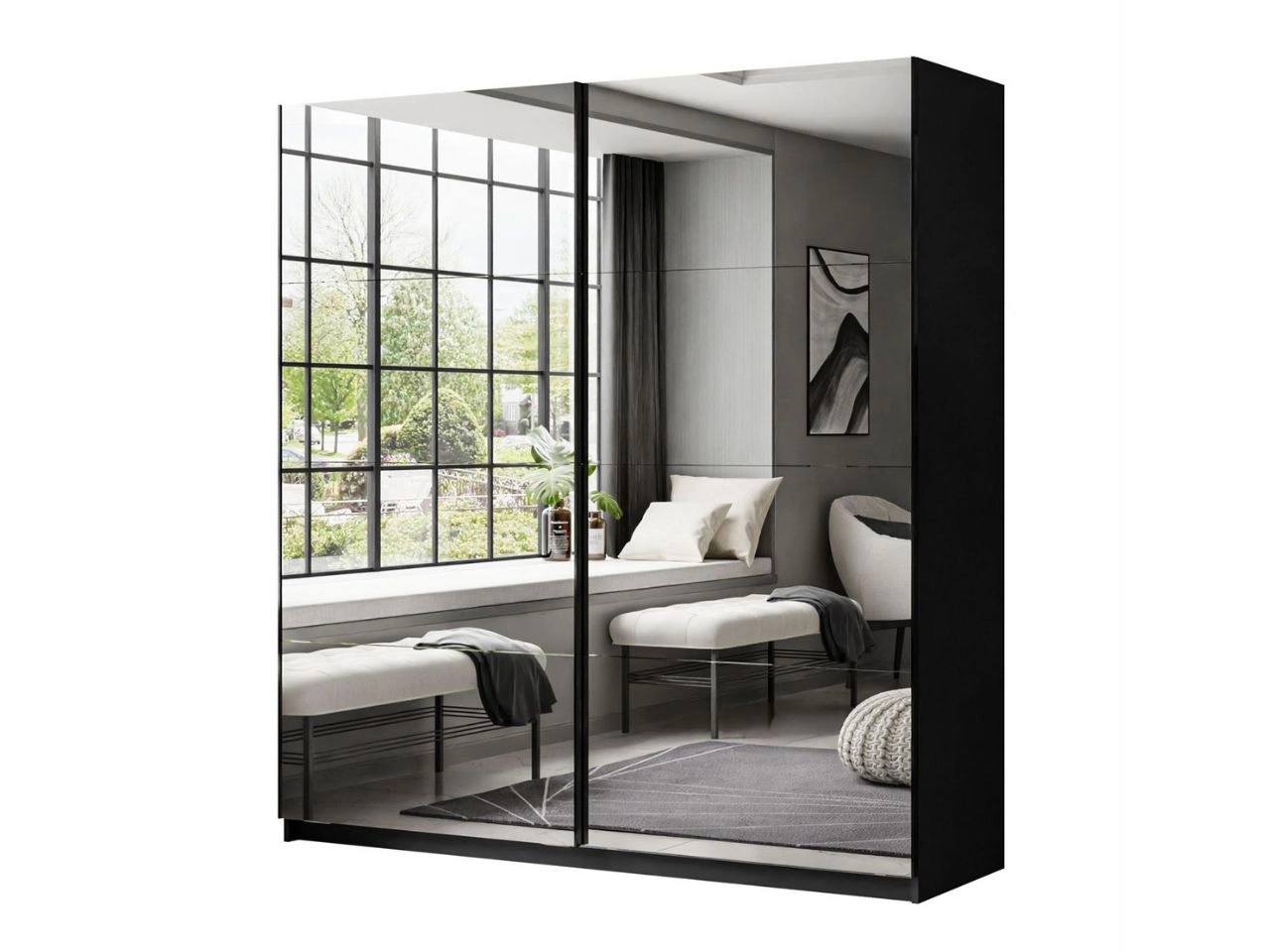 Schwebetürenschrank Zweitüriger mit Spiegelm 194 cm Nuveo Schwarz Hochglanz
