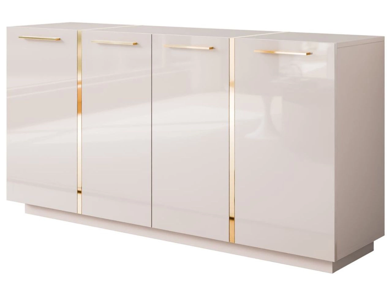 Viertürige Kommode 158 cm Glamour-Stil mit goldenen Griffen Lunelie Kaschmirglanz