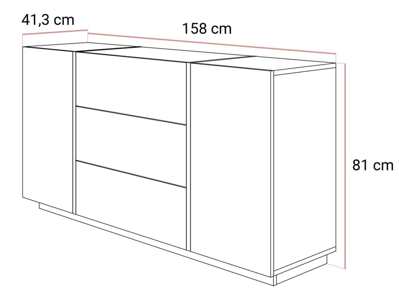 Zweitürige Kommode 158 cm mit drei Schubladen Lunelie Kaschmirglanz
