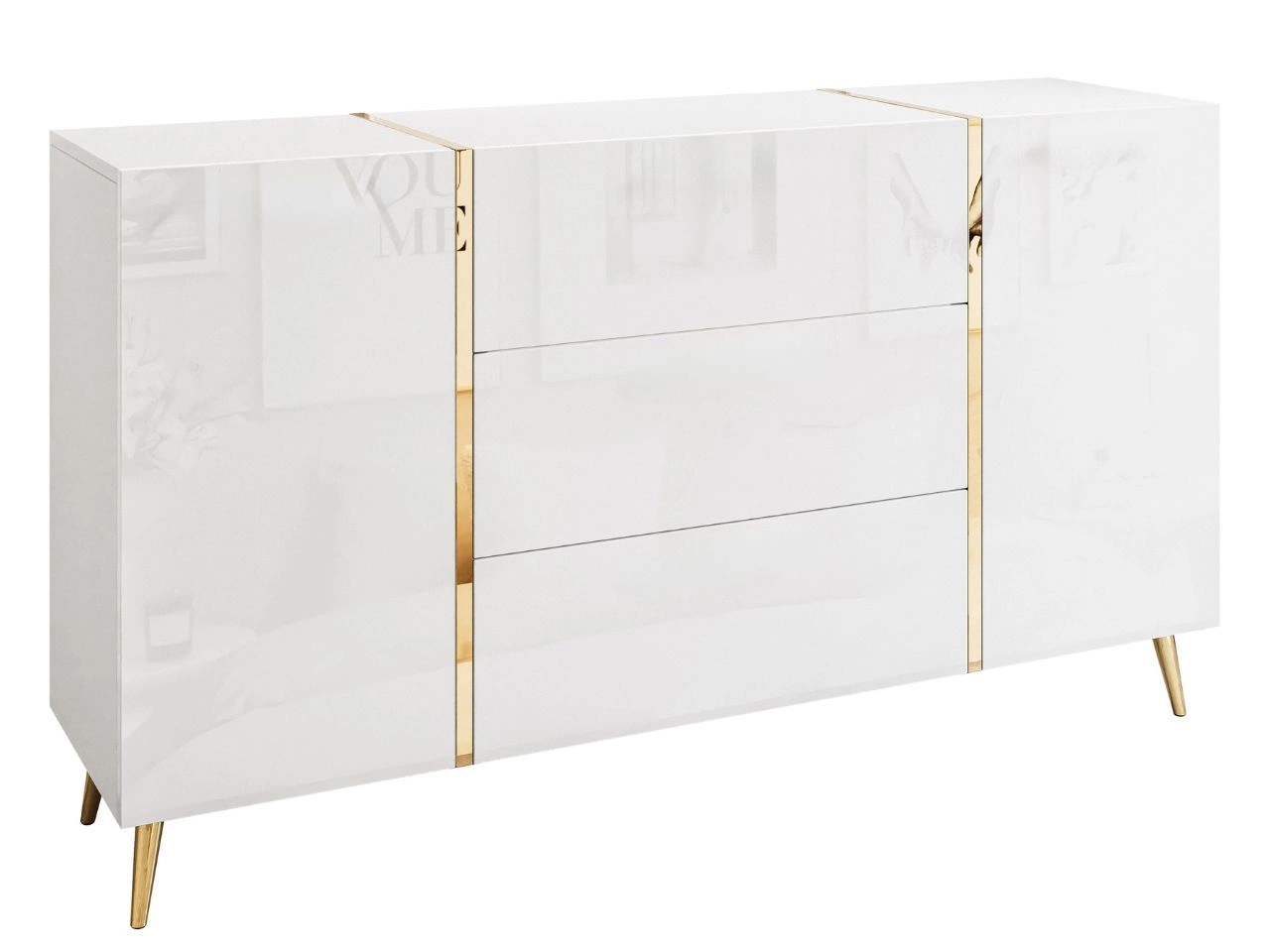 Zweitürige Kommode 158 cm auf goldenen Beinen mit drei Schubladen Lunelie Weißglanz
