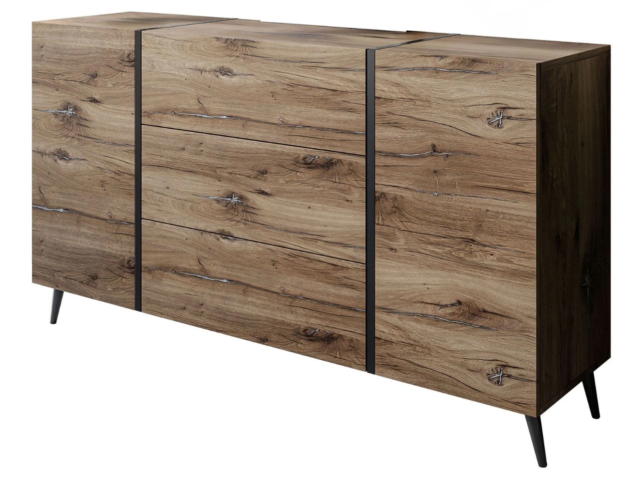 Zweitürige Kommode 158 cm mit drei Schubladen und Metallbeinen Lunelie Flagstaff-Eiche