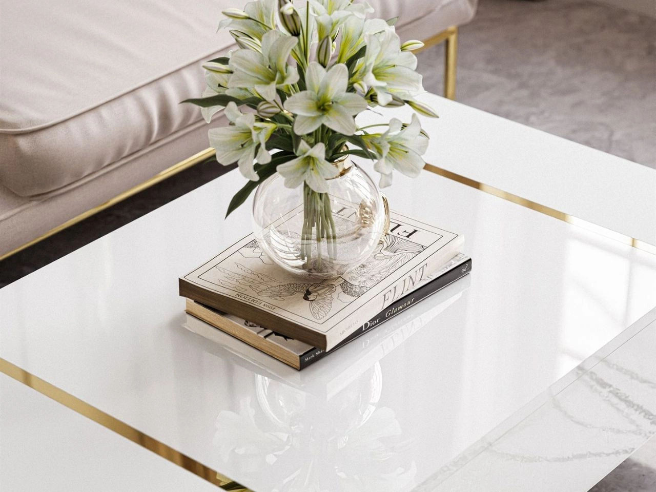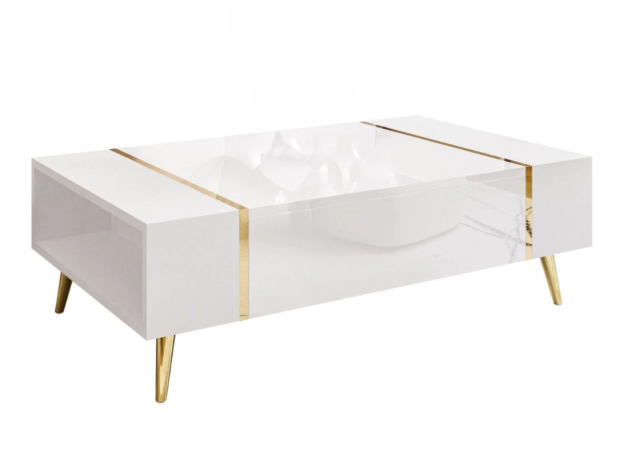 Couchtisch auf goldenen Beinen im Glamour-Stil Lunelie Weiß Hochglanz