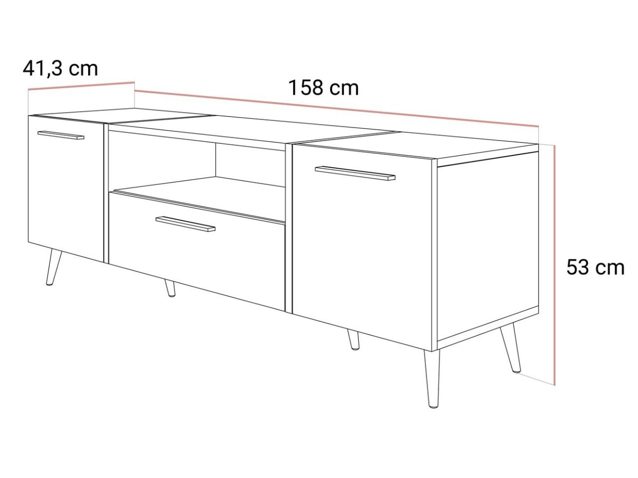 Das TV-Lowboard Lunelie ist ein elegantes Modell, das sich durch subtile Details und hohe Benutzerfreundlichkeit auszeichnet. Die Fronten der Schränke und der Schublade sind in Hochglanz ausgeführt, während der Korpus in Matt gehalten ist. Das Ganze wurde aus hochwertiger laminierten Platte gefertigt.