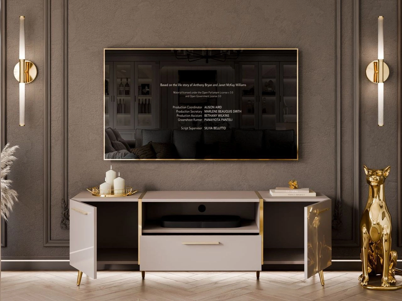 TV-Schrank im Glamour-Stil mit Schränken und Schublade Lunelie Kaschmir Hochglanz
