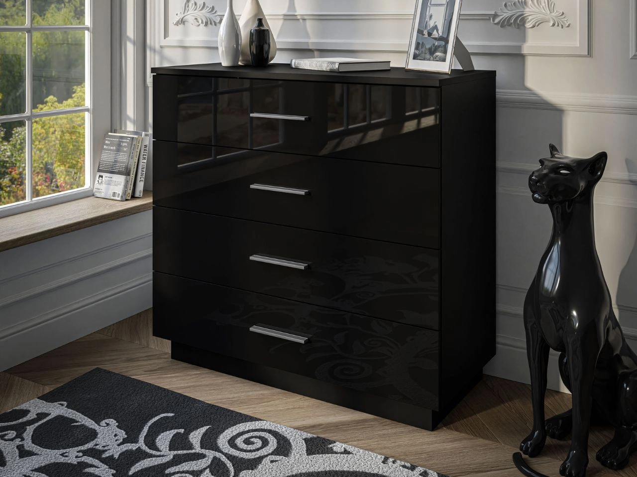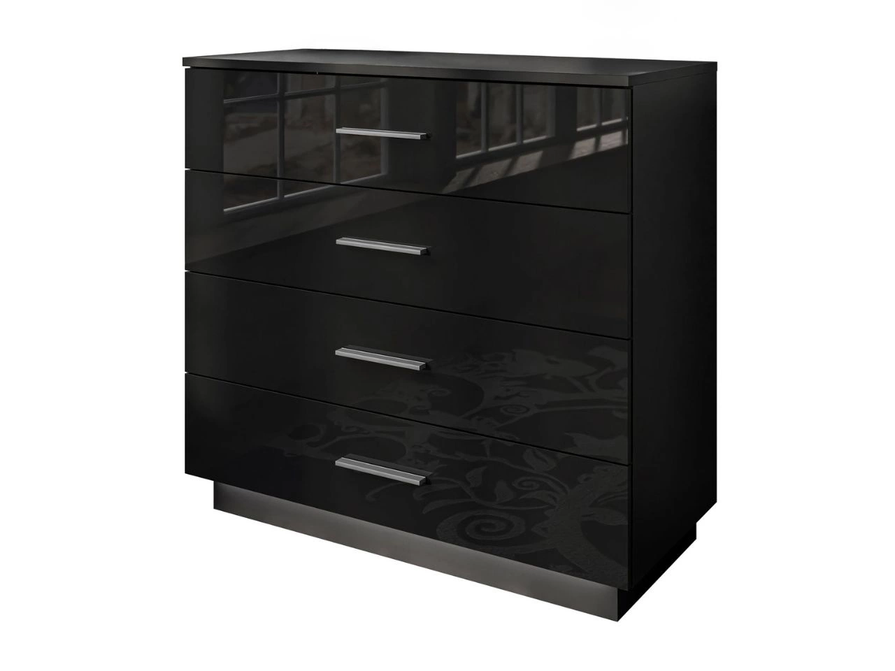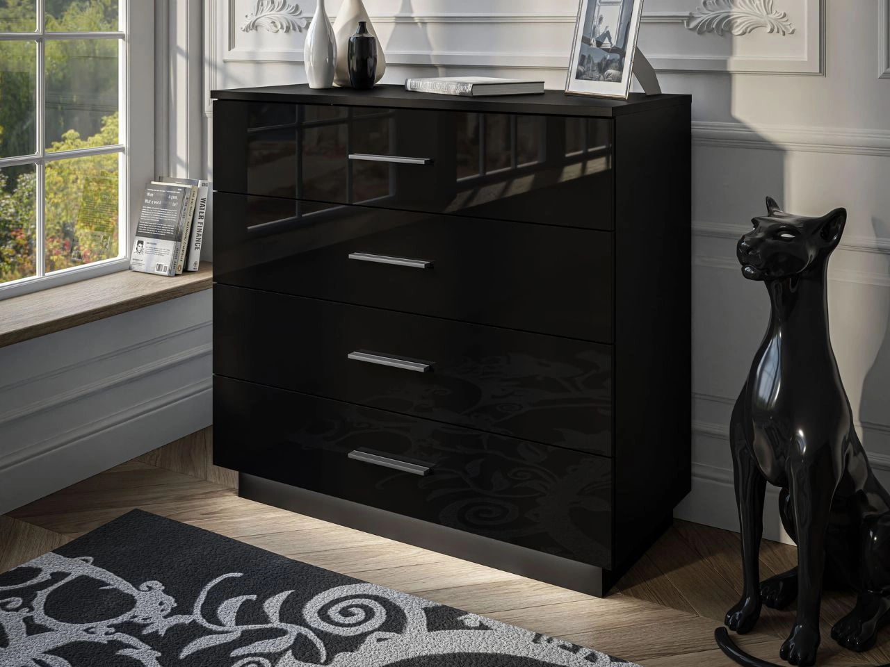 Kommode mit vier Schubladen und LED-Beleuchtung Nuveo Schwarz Hochglanz