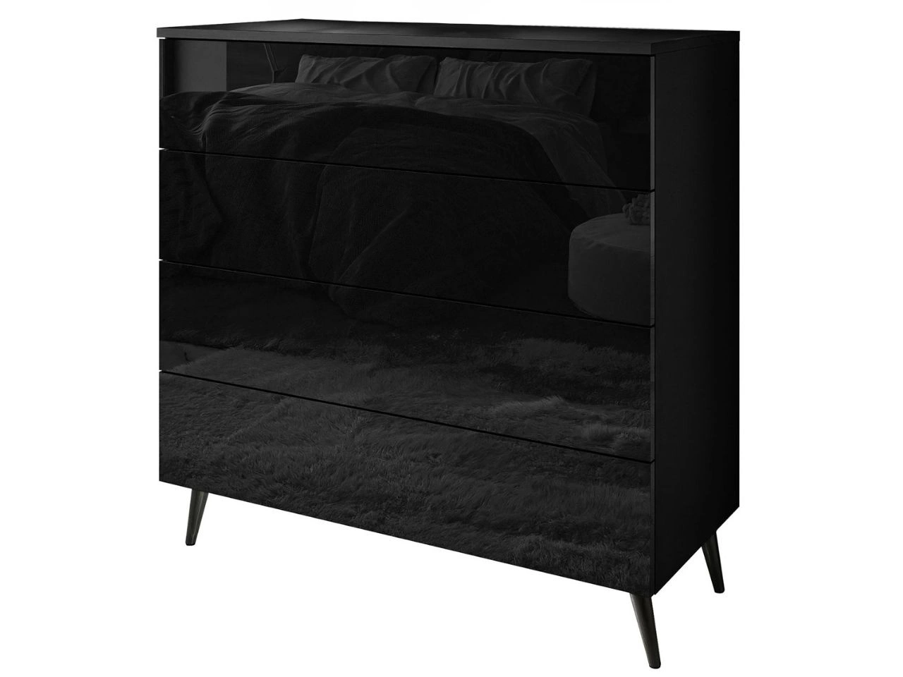 Kommode mit vier Schubladen und LED-Beleuchtung auf Schwarzen Metallbeinen Nuveo Schwarz Hochglanz