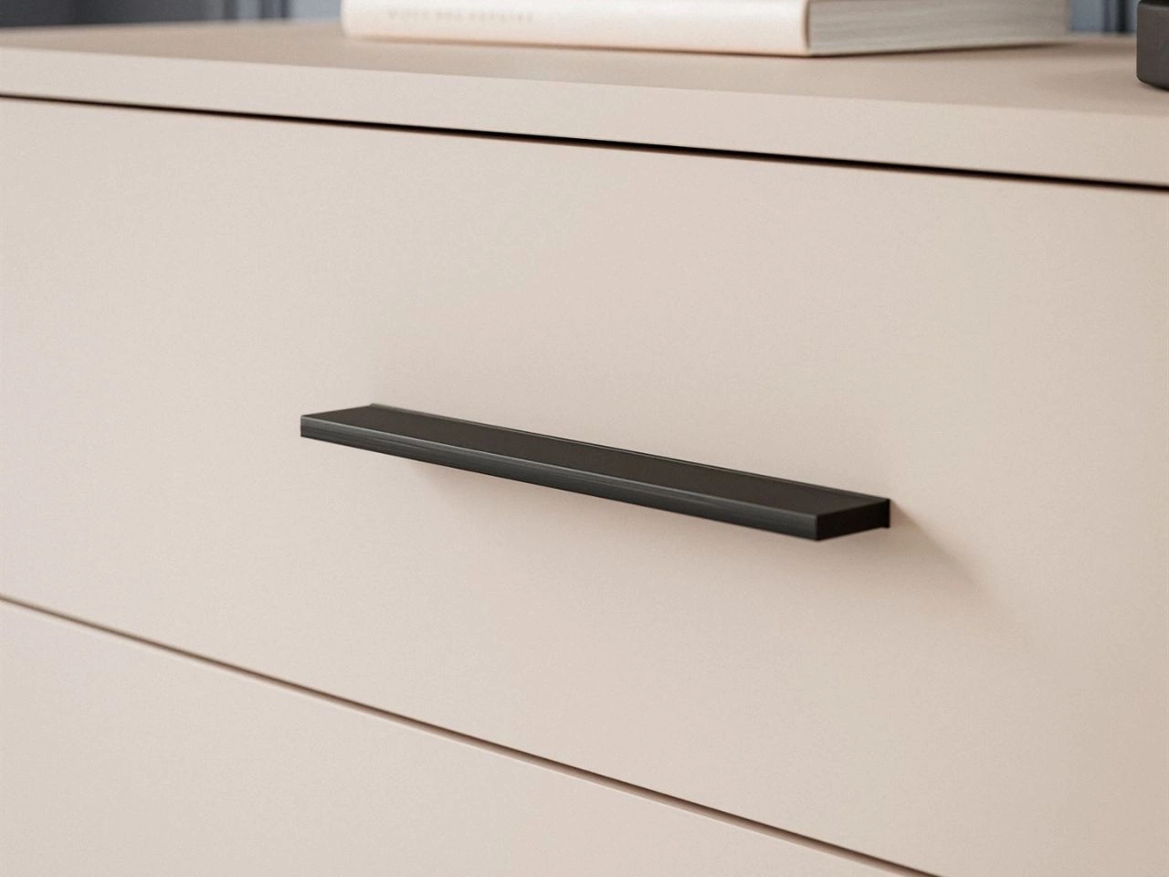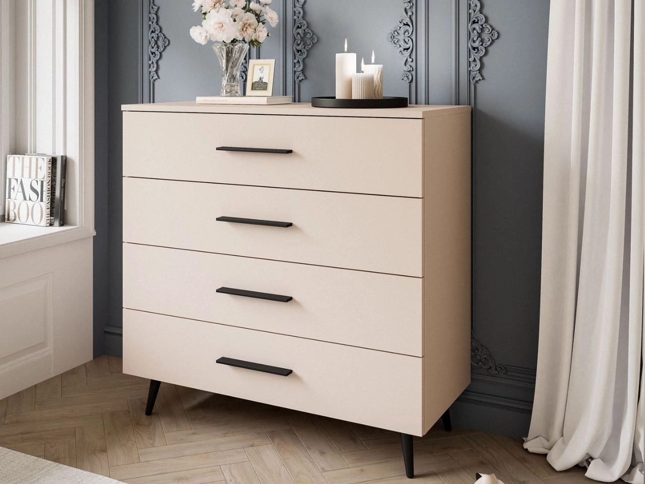 Suchen Sie ein praktisches und stilvolles Möbelstück für Ihr Zuhause? Kaschmir Kommode Nuveo ist die ideale Lösung für Wohnzimmer, Schlafzimmer, Flur oder Jugendzimmer. Ihre moderne Form und die matte Ausführung vergrößern den Raum optisch und verleihen dem Interieur Leichtigkeit und Eleganz