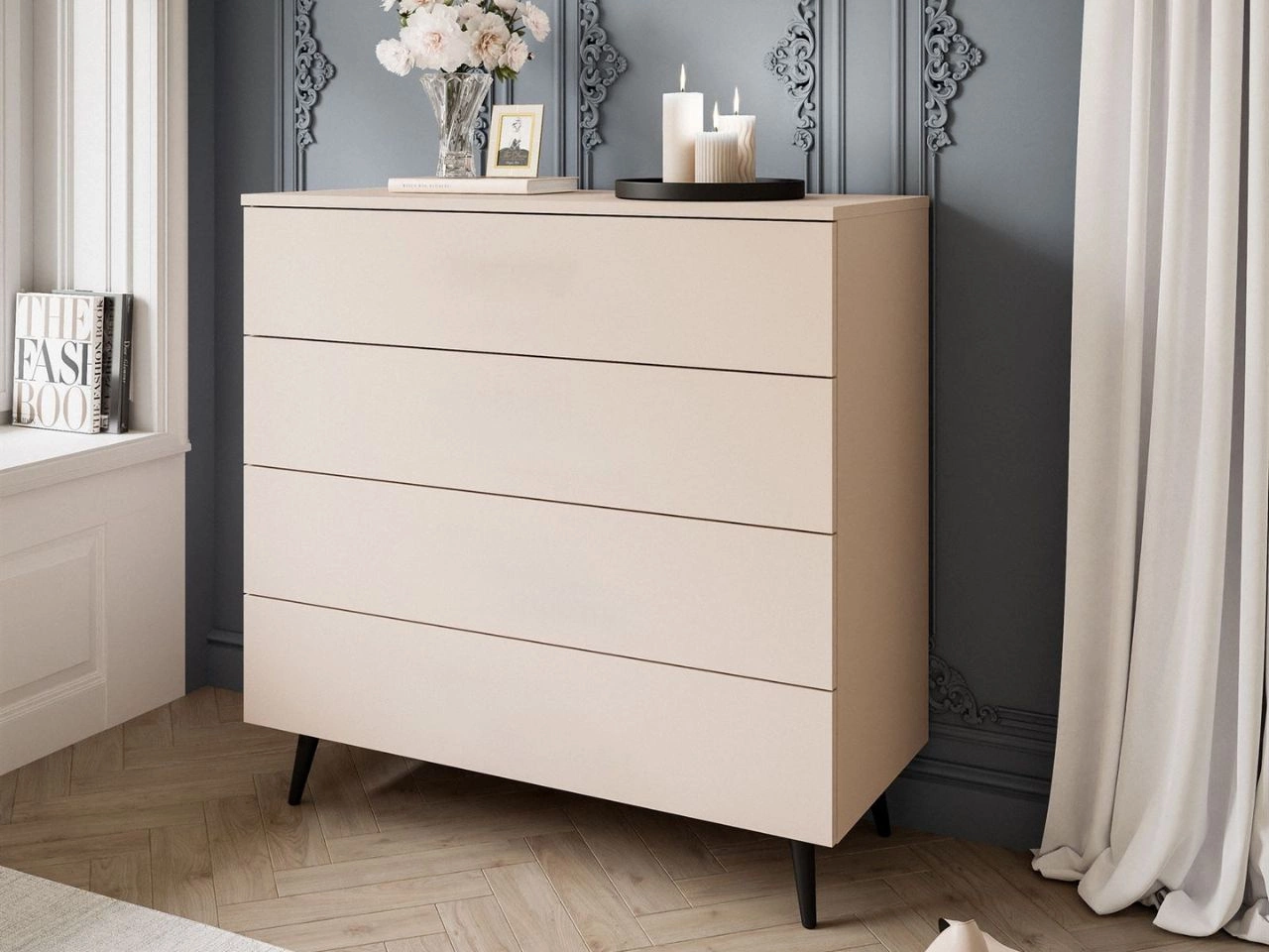 Suchen Sie ein praktisches und stilvolles Möbelstück für Ihr Zuhause? Kaschmir Kommode Nuveo ist die ideale Lösung für Wohnzimmer, Schlafzimmer, Flur oder Jugendzimmer. Ihre moderne Form und die matte Ausführung vergrößern den Raum optisch und verleihen dem Interieur Leichtigkeit und Eleganz