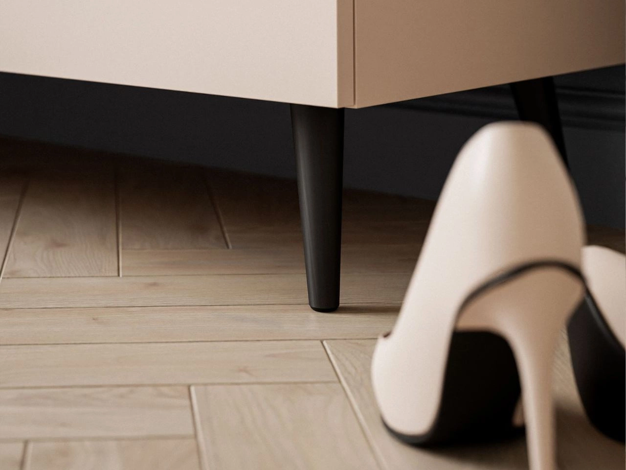Kollektion Nuveo vereint modernes Design, Funktionalität und hochwertige Verarbeitung und bietet zahlreiche Personalisierungsmöglichkeiten – von der Frontfarbe über die Art der Füße bis hin zum Öffnungssystem der Türen, sowohl klassische Griffe als auch PUSH TO OPEN. In der Serie sind Kommoden, Schränke, Nachttische erhältlich, sodass sich einfach eine stimmige, moderne und einzigartige Inneneinrichtung gestalten lässt.