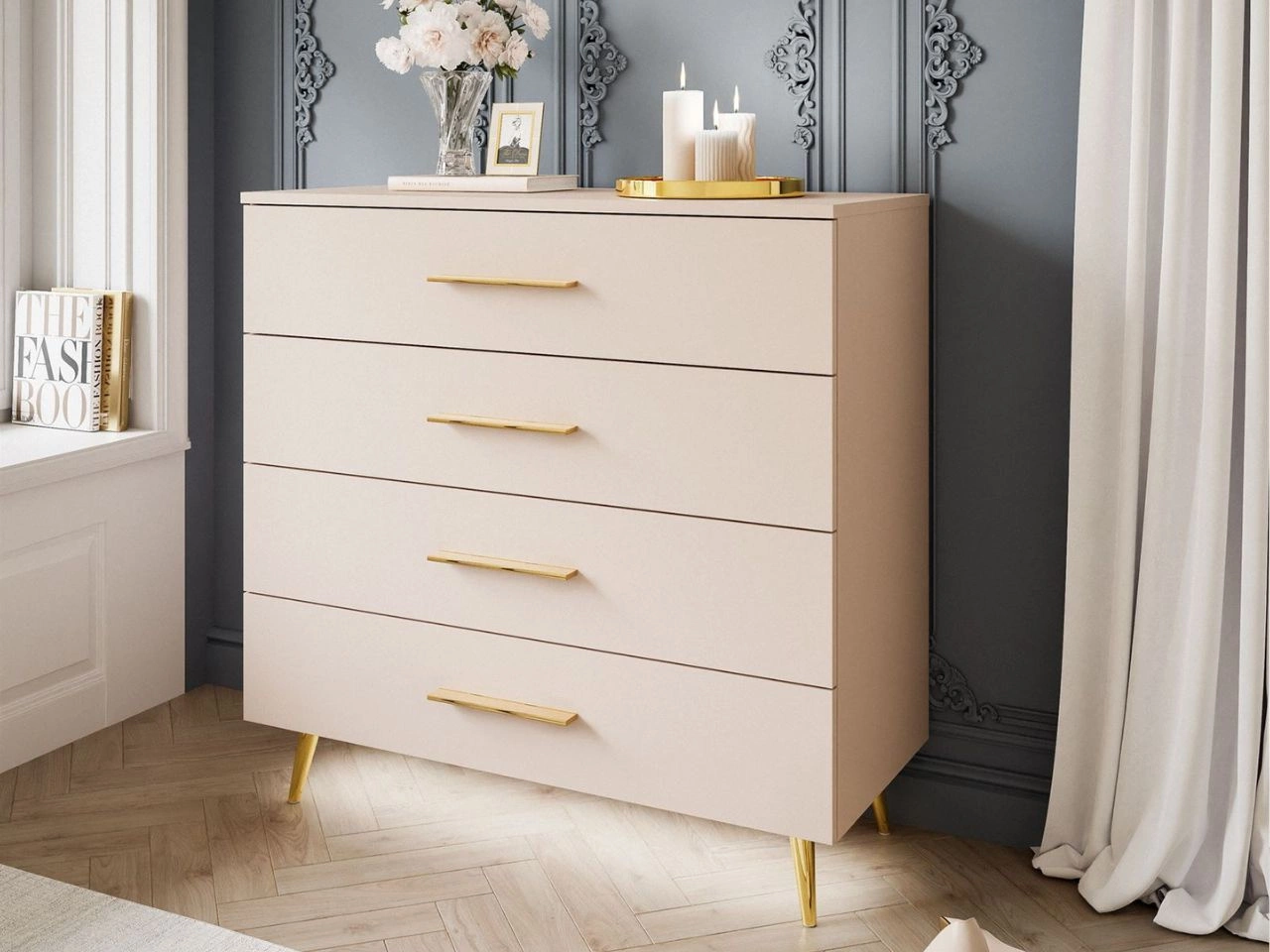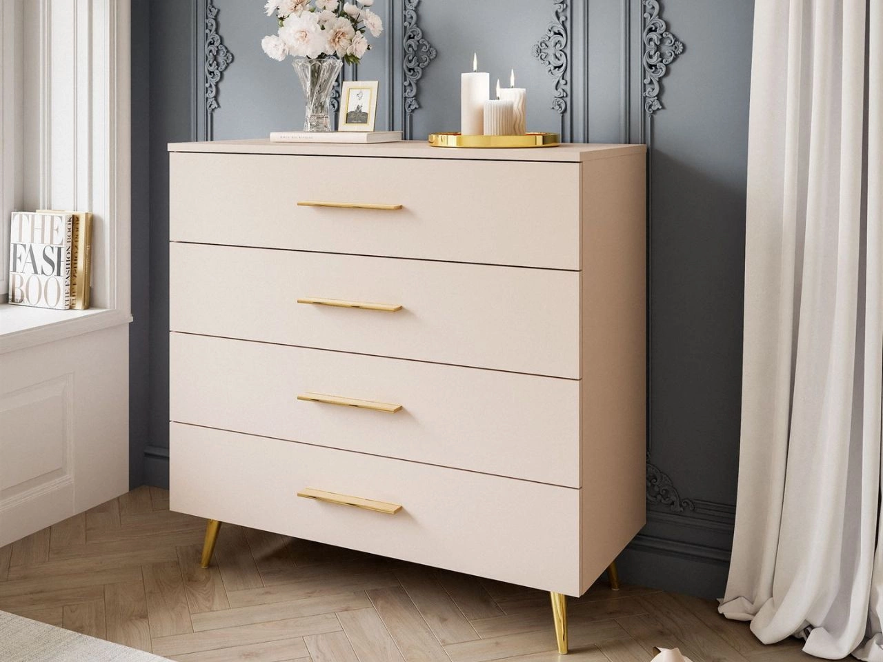 Suchen Sie ein praktisches und stilvolles Möbelstück für Ihr Zuhause? Kaschmir Kommode Nuveo ist die ideale Lösung für Wohnzimmer, Schlafzimmer, Flur oder Jugendzimmer. Ihre moderne Form und die matte Ausführung vergrößern den Raum optisch und verleihen dem Interieur Leichtigkeit und Eleganz