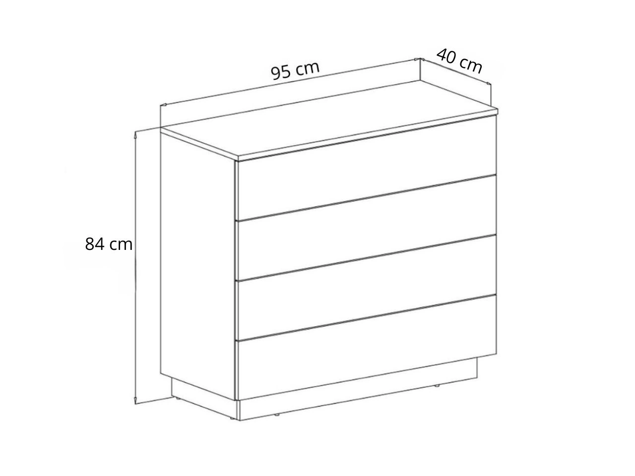 Kommode ist mit vier geräumigen Schubladen ausgestattet, die das Verstauen von Kleidung, Dokumenten, Accessoires oder kleinen Gegenständen erleichtern. Die breite Ablagefläche eignet sich perfekt für Dekorationen, Pflanzen oder Familienfotos.